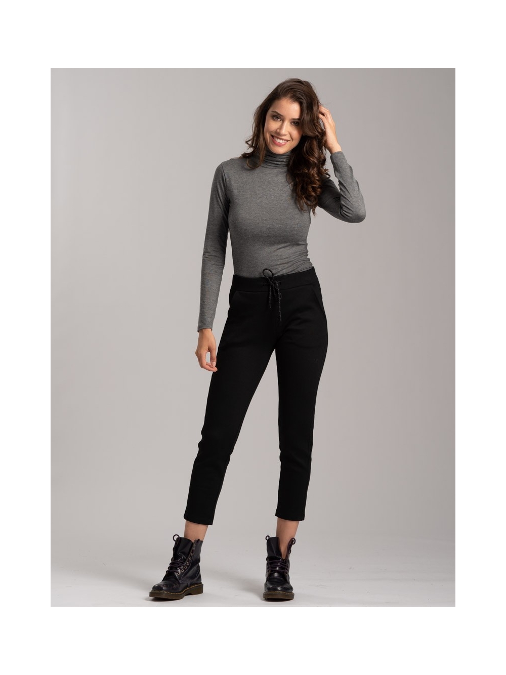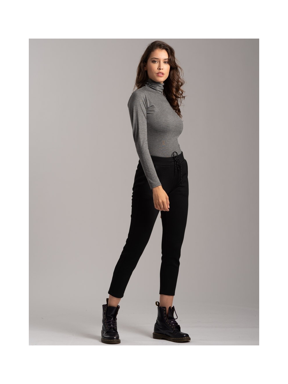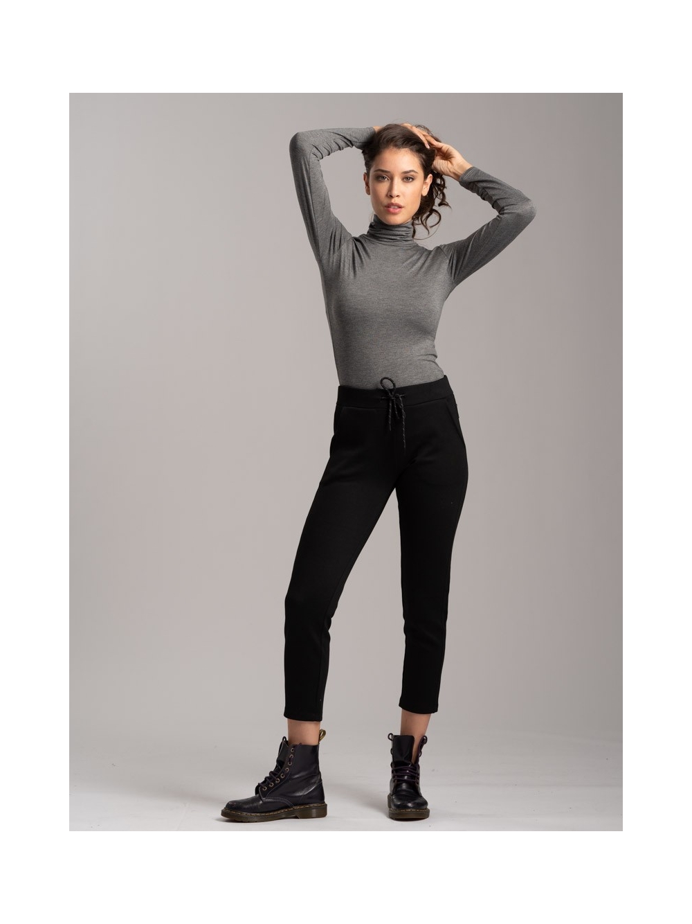 Pantalone donna realizzato intessuto tecnico (Scuba) bicolore con zip invisibili, nascoste nei tagli ergonomici dei capi