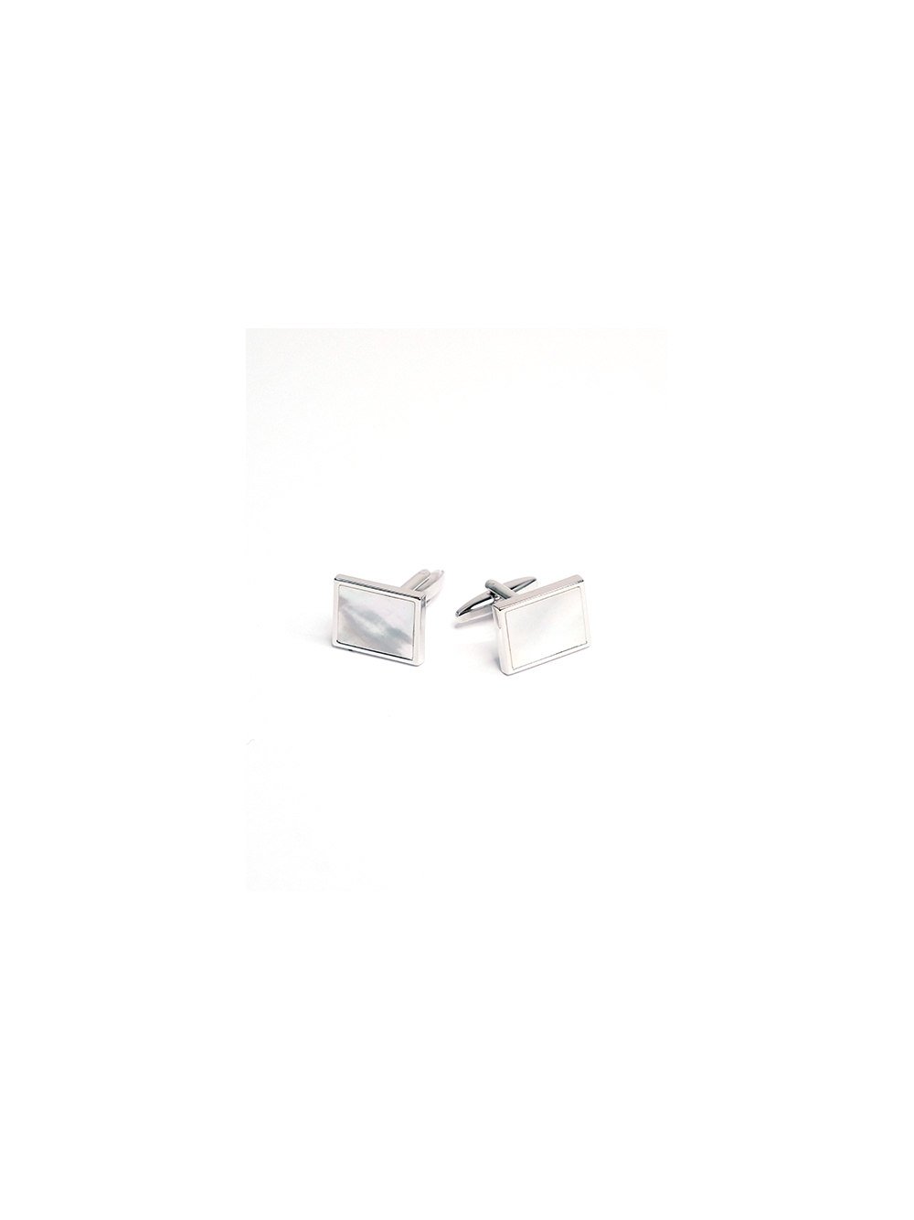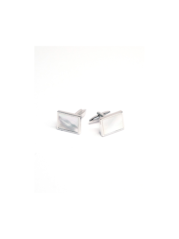 Gemelli uomo per camicia da polso a forma rettangolare caratterizzati da una base argento e pietra madreperla.