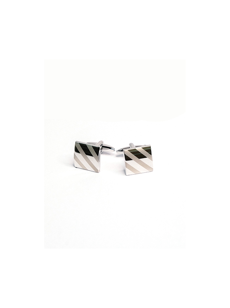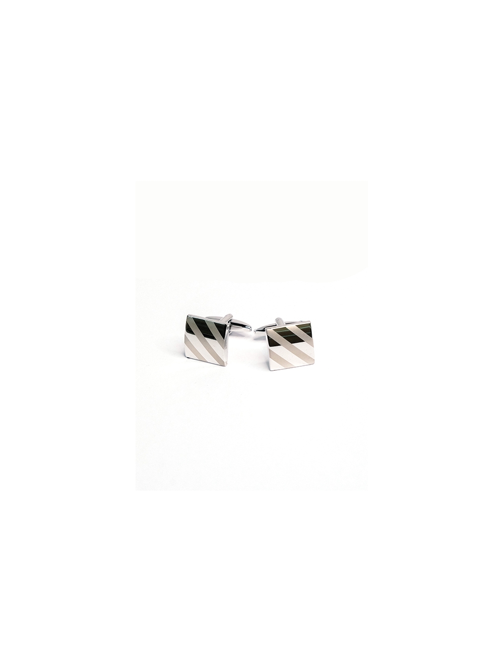 Gemelli uomo per camicia da polso a forma quadrata caratterizzati da una base argento e bande satinate diagonali.