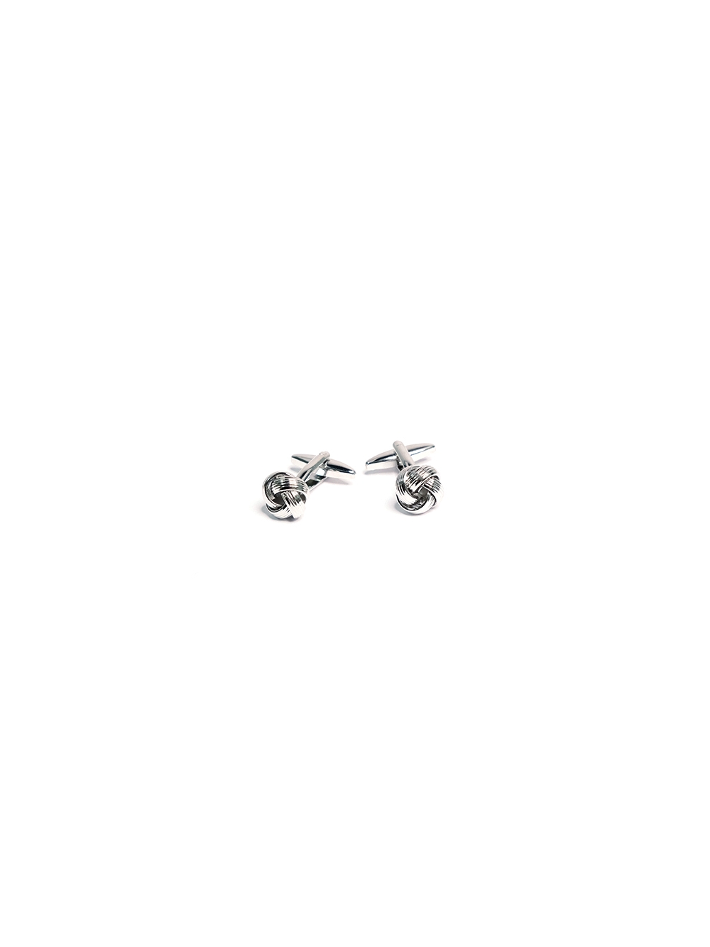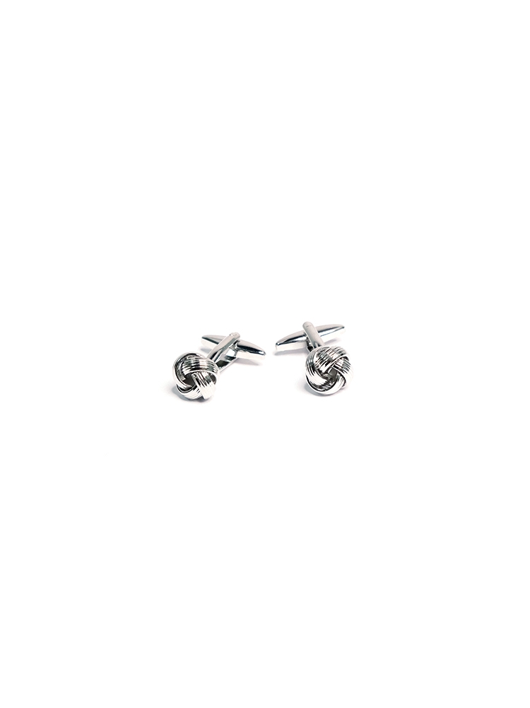 Gemelli uomo per camicia da polso con nodino in nichel di media dimensione caratterizzati da una base argento e una superficie intarsiata a righe.