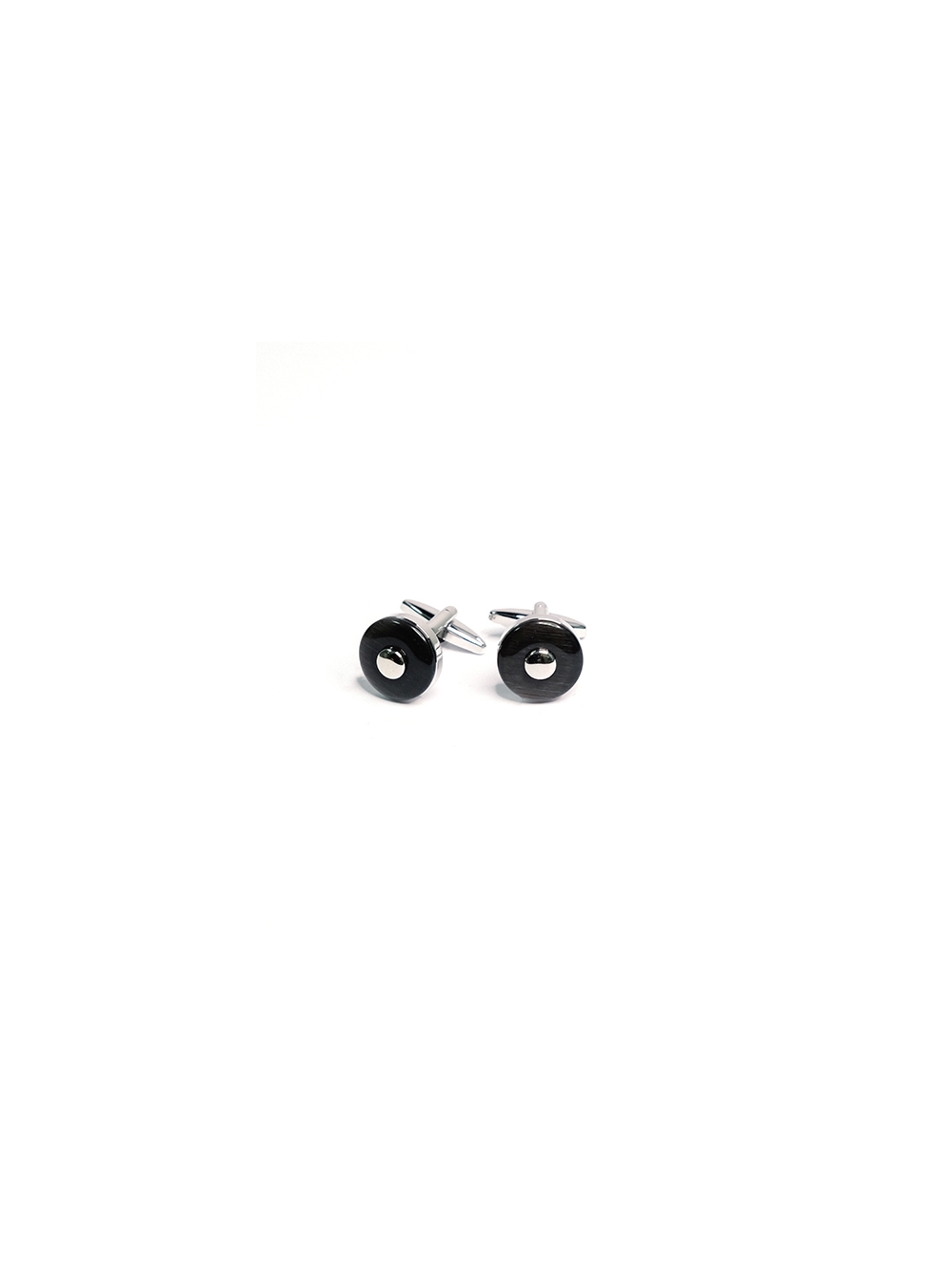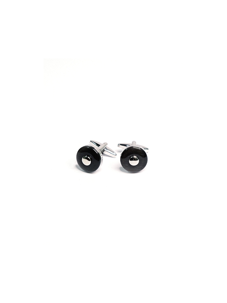 Gemelli uomo per camicia da polso a forma rotonda realizzato in pietra colorata e inserto centrale in metallo. Disponibile nelle varianti bordeaux, nero e blu marine.