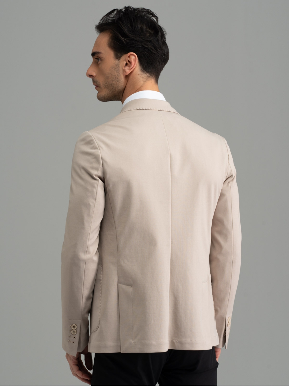 Giacca uomo sfoderata realizzata in tessuto maglia Punto Milano stretch, confortevole da indossare e ideale per vestire ogni fisicità.