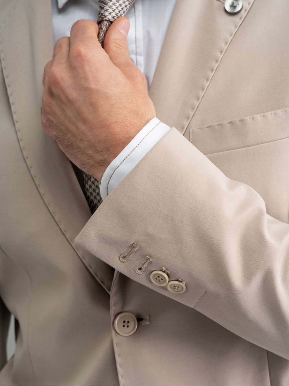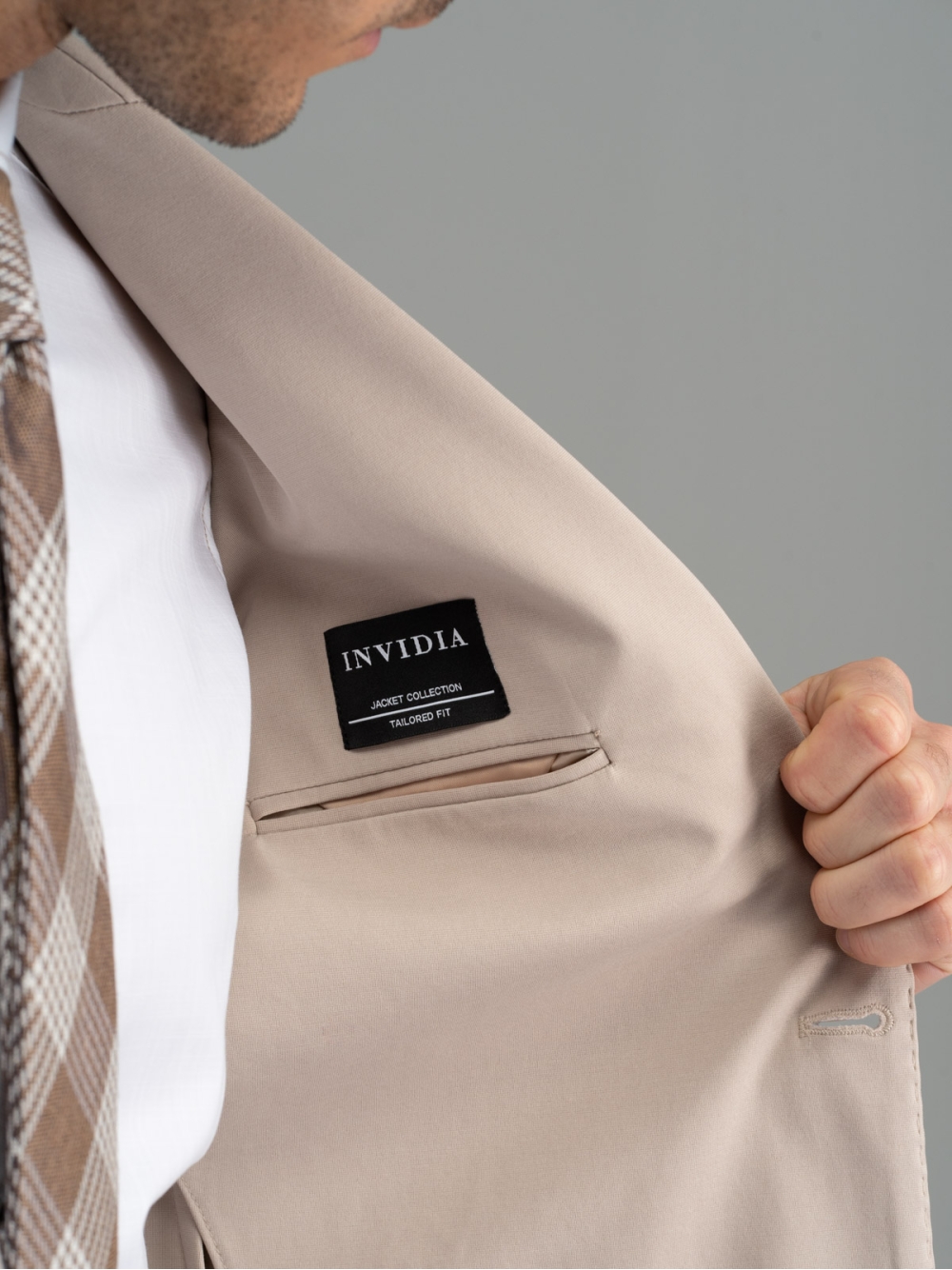 Giacca uomo sfoderata realizzata in tessuto maglia Punto Milano stretch, confortevole da indossare e ideale per vestire ogni fisicità. La cucitura con punto AMF sul revers e lungo tutto il profilo è un richiamo allo stile sartoriale, che dona alla giacca un tocco di classe. Per creare un look più ricercato è possibile abbinare il gilet uomo in maglia Punto Milano stretch sempre color sabbia. Questo capo – come tutte le giacche uomo del brand – presenta una piccola spilletta con il logo INVIDIA 1973.
