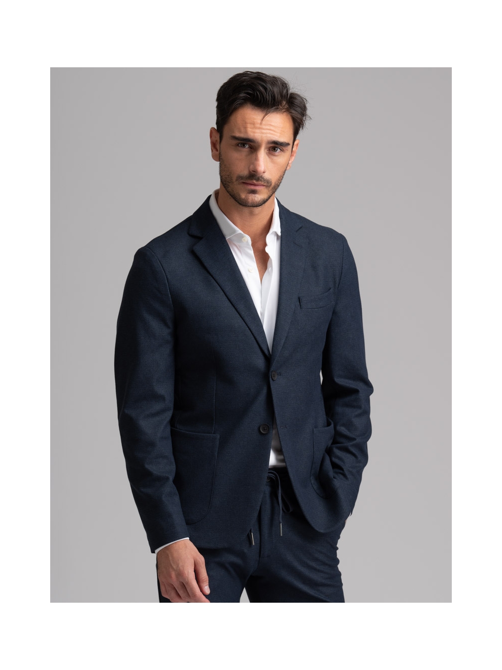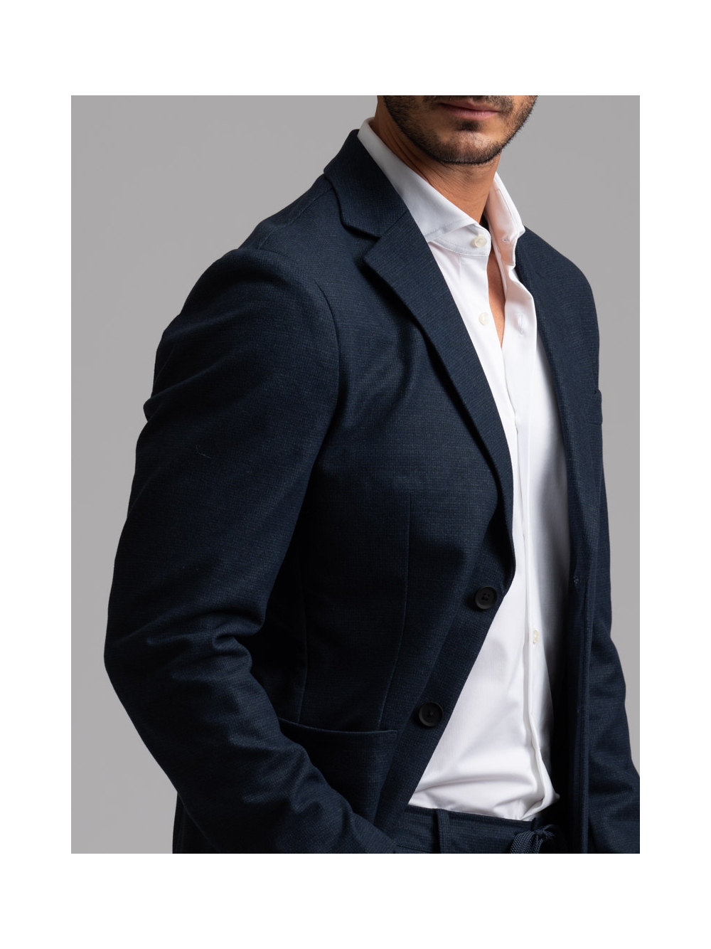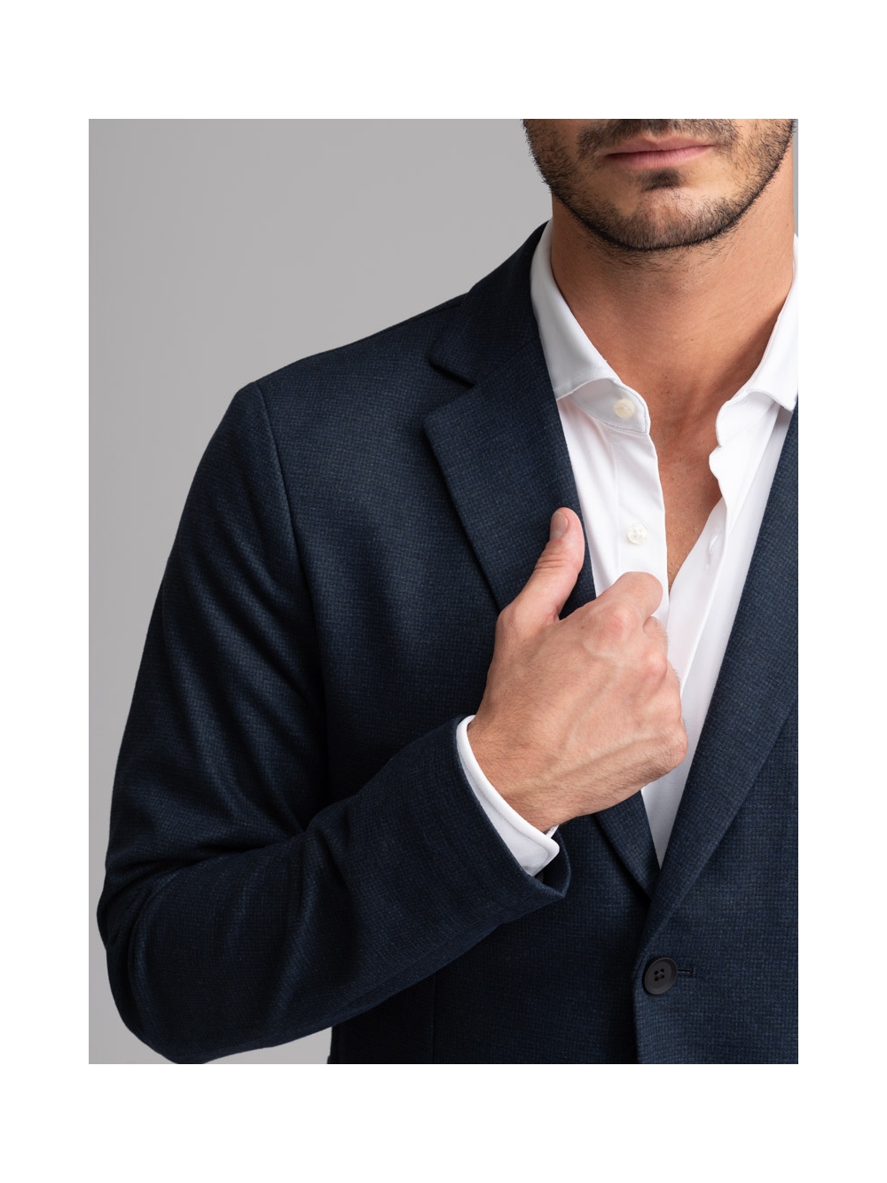 Giacca uomo sfoderata blu in Jersey micro disegno, dalla vestibilità perfetta e confortevole.