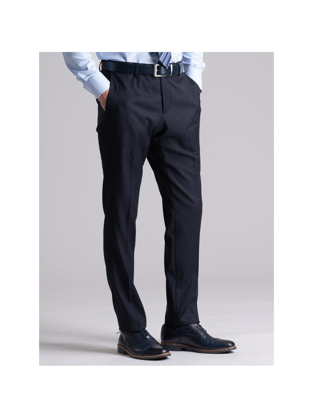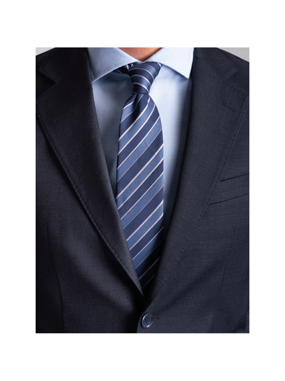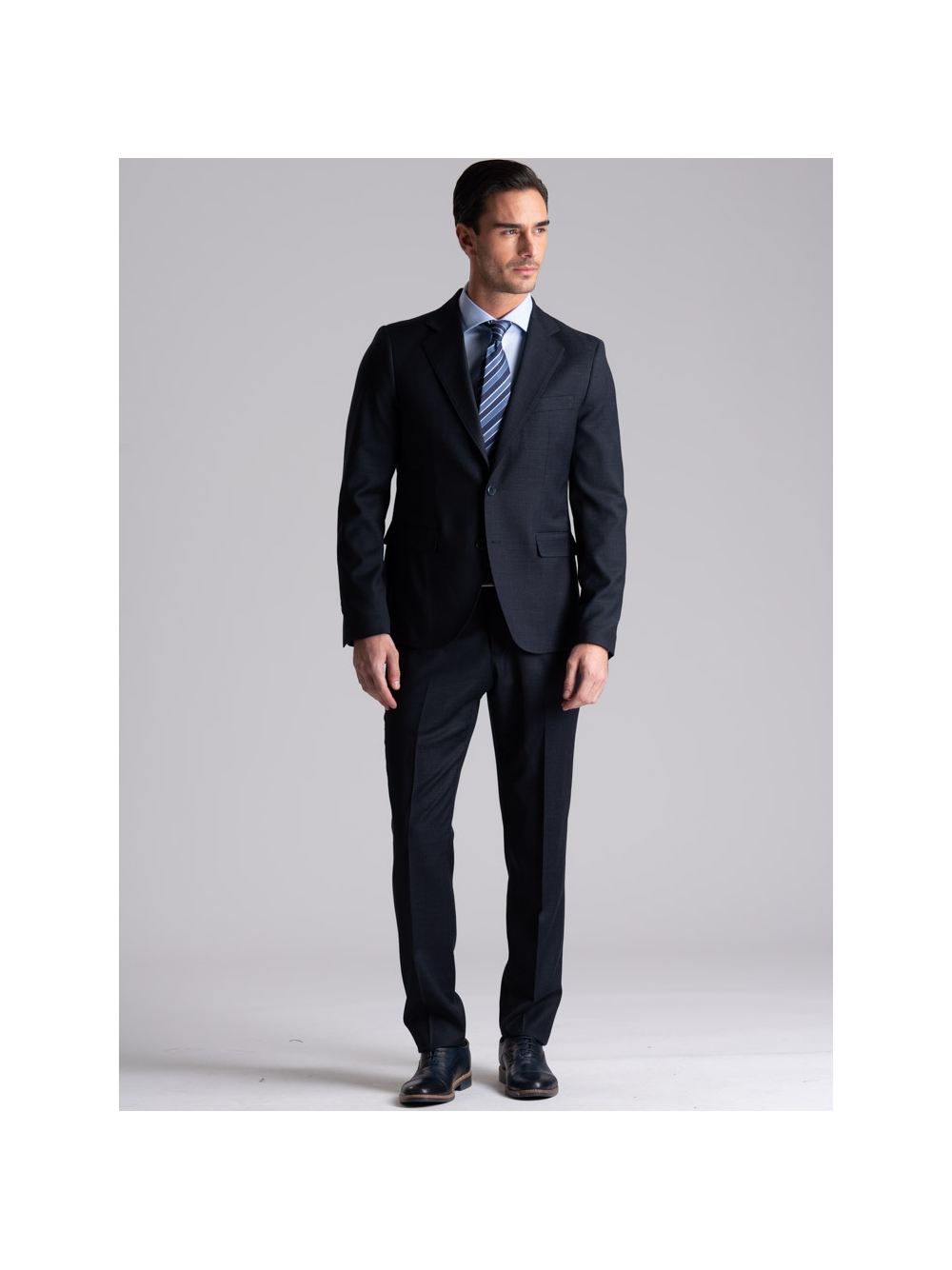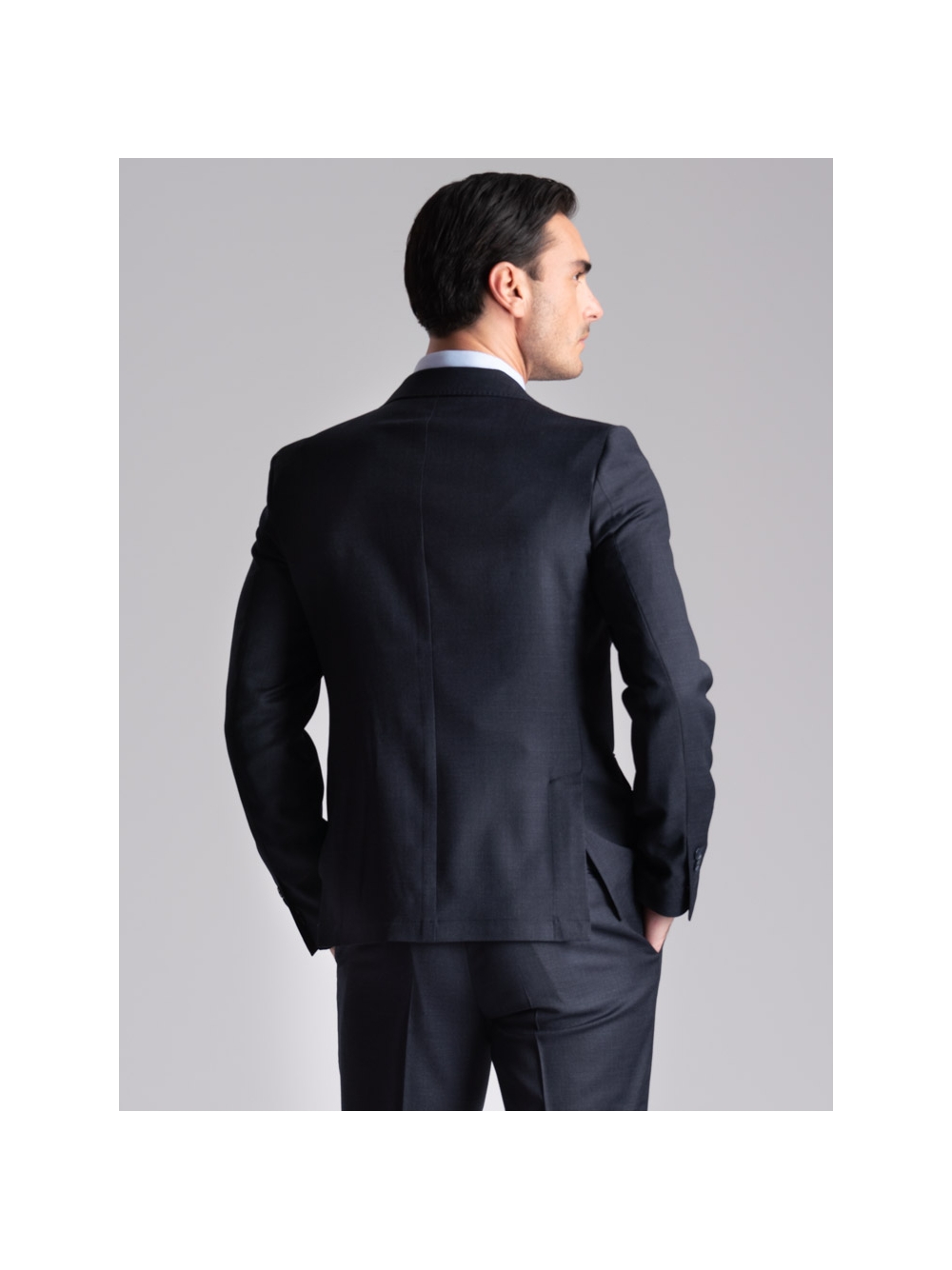 L’abito da uomo in tessuto fresco di lana stretch con fantasia Principe di Galles blu è composto da una giacca e il pantalone. La giacca a due bottoni con revers classici, presenta due tasche con patella, il taschino sul petto per la pochette, doppio spacco posteriore e polsini con due bottoni abbottonati. I revers e le tasche sono rifinite con impuntura AMF. All’interno è rifinita con fodera sulla schiena e sul davanti. Il pantalone ha una chiusura con sottopancia con gancio e bottone, due tasche posteriori a doppio filetto con bottone e passanti per la cintura. Come da tradizione sartoriale, il pantalone presenta lo slargo con cucitura in aperto che consente di allargare il pantalone guadagnando una taglia e mezza, e il sottopancia per una chiusura perfetta e una vestibilità confortevole. Questo abito da uomo elegante è adatto per situazioni formali, come la partecipazione ad una cerimonia come invitato o come completo da ufficio.