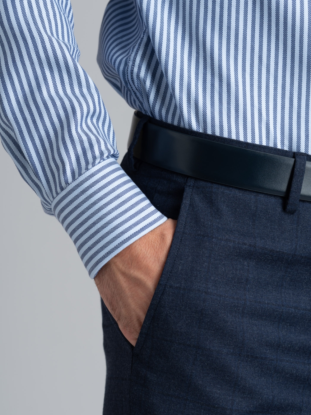 L’abito da uomo in tessuto misto lana effetto melange con leggera fantasia madras ed effetto finestrato è composto dalla giacca e pantalone. La giacca a due bottoni con revers classici, presenta due tasche con patella, il taschino sul petto per la pochette, doppio spacco posteriore e polsini con due bottoni. Il pantalone ha una chiusura con sottopancia con gancio e bottone, due tasche posteriori a doppio filetto con bottone e passanti per la cintura. Come da tradizione sartoriale, il pantalone presenta lo slargo con cucitura in aperto che consente di allargare il pantalone guadagnando una taglia e mezza, e il sottopancia per una chiusura perfetta e una vestibilità confortevole. Possibilità di abbinamento con il gilet G/618_224/WO224/C159 caratterizzato dalla parte posteriore in twill satin.