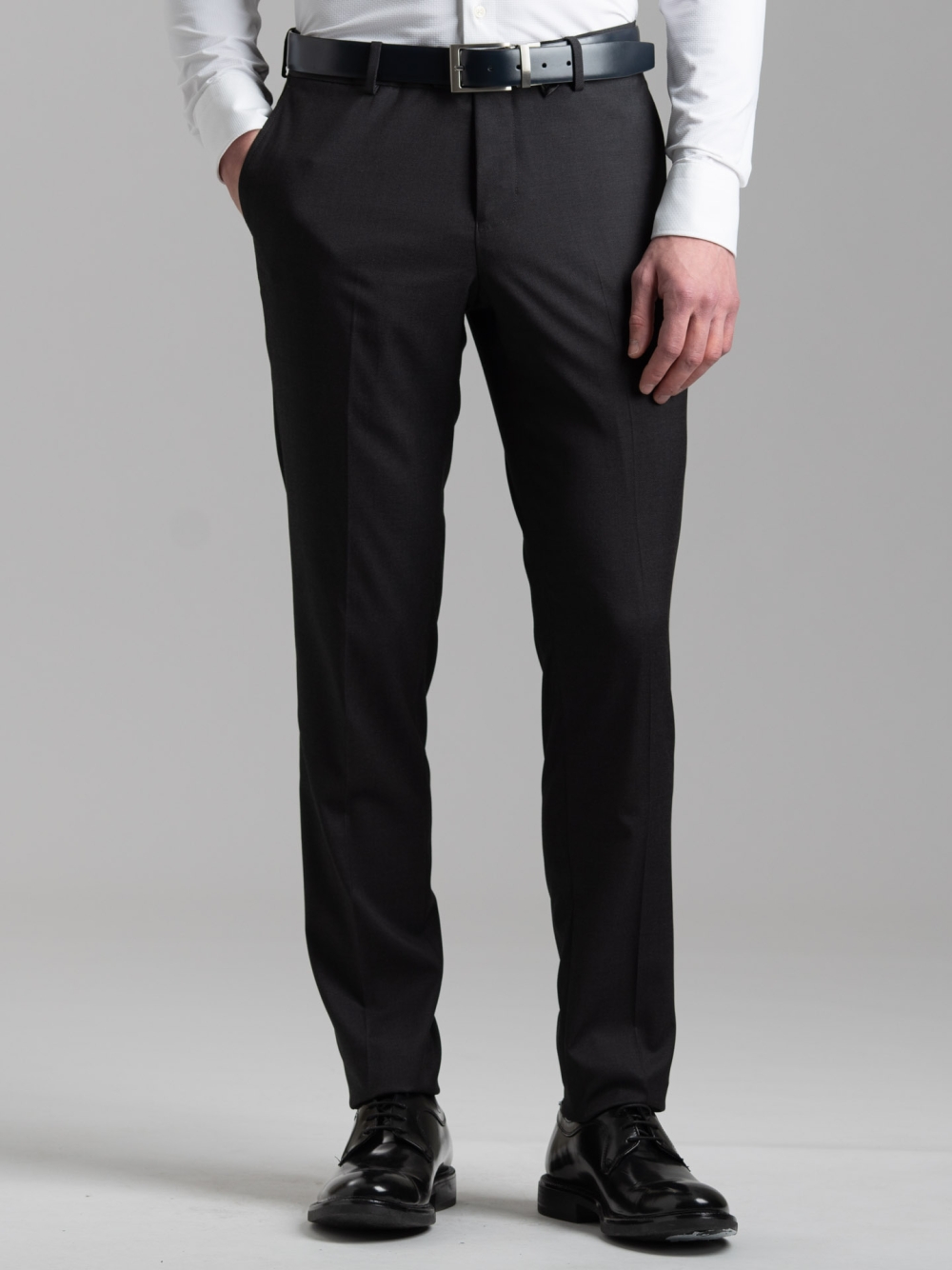 L’abito da uomo in tessuto di poliviscosa leggero armaturato nero è composto dalla giacca e pantalone. La giacca a due bottoni con revers classici, presenta due tasche con patella, il taschino sul petto per la pochette, doppio spacco posteriore e polsini con due bottoni. Il pantalone ha una chiusura con sottopancia con gancio e bottone, due tasche posteriori a doppio filetto con bottone e passanti per la cintura. Come da tradizione sartoriale, il pantalone presenta lo slargo con cucitura in aperto che consente di allargare il pantalone guadagnando una taglia e mezza, e il sottopancia per una chiusura perfetta e una vestibilità confortevole. Questo abito da uomo elegante è adatto per situazioni formali, come la partecipazione ad una cerimonia come invitato o come completo da ufficio. A completamento dell'abito è presente il gilet realizzato nello stesso tessuto con retro in twill satin, cinque bottoni, tre taschini sul davanti e laccetto posteriore per regolare la vestibilità.