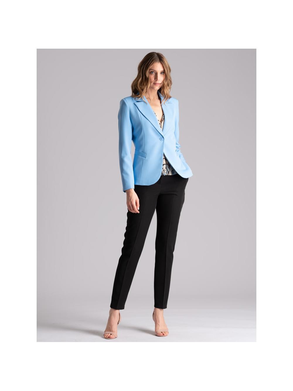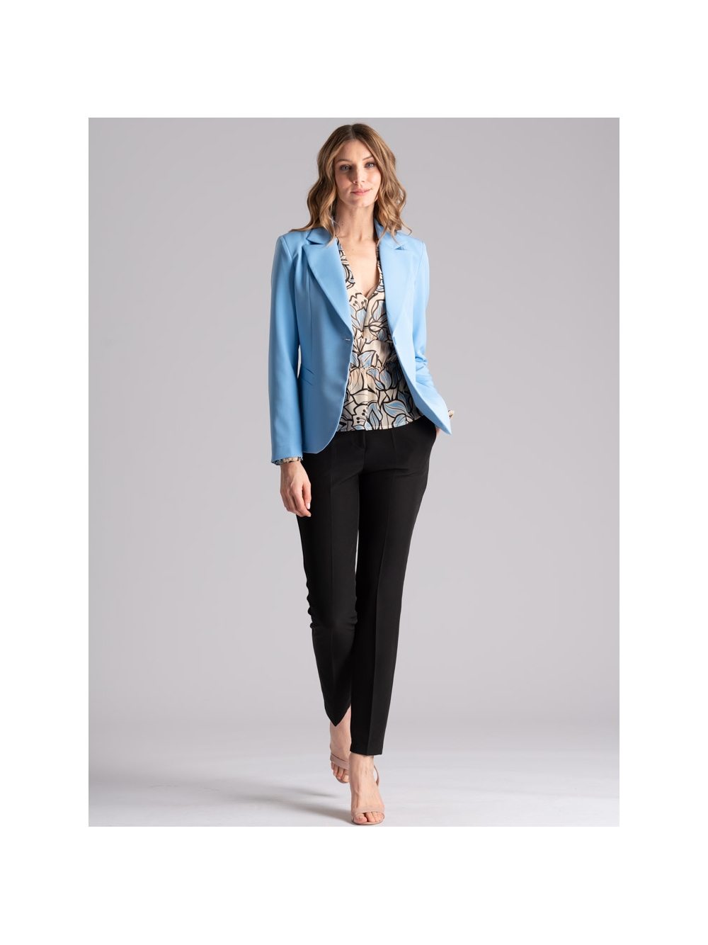 Giacca donna sfoderata realizzata in confortevole tessuto bistretch, caratterizzata da una linea sciancrata e avvitata sul busto, collo con revers a lancia, e bordatura interna. Disponibile nelle varianti colore sabbia e azzurro. Insieme al pantalone a vita alta e gamba dritta realizzato nello stesso tessuto e colore, crea un completo raffinato perfetto per occasioni eleganti o da indossare ad una cerimonia.