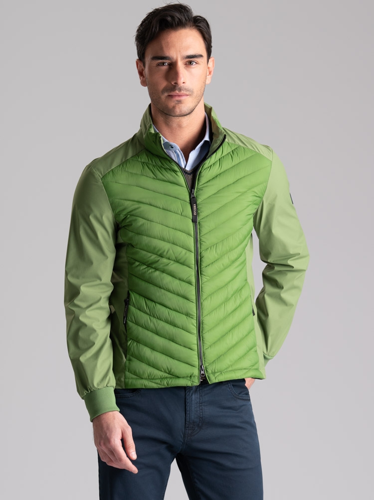 Giubbino uomo sportivo con due tessuti e imbottitura davanti