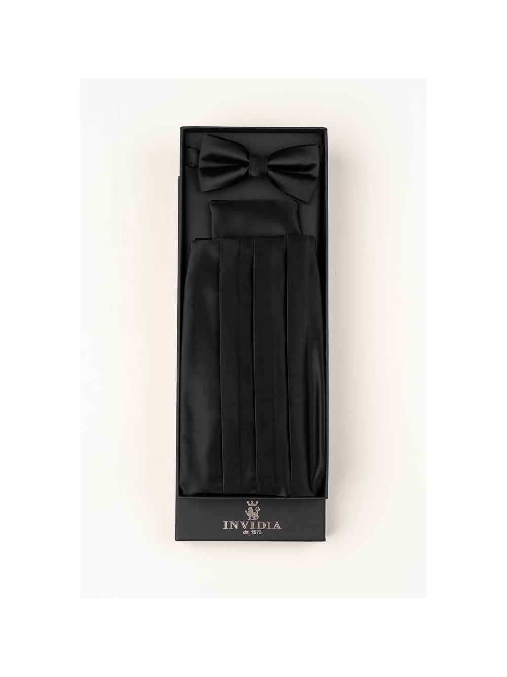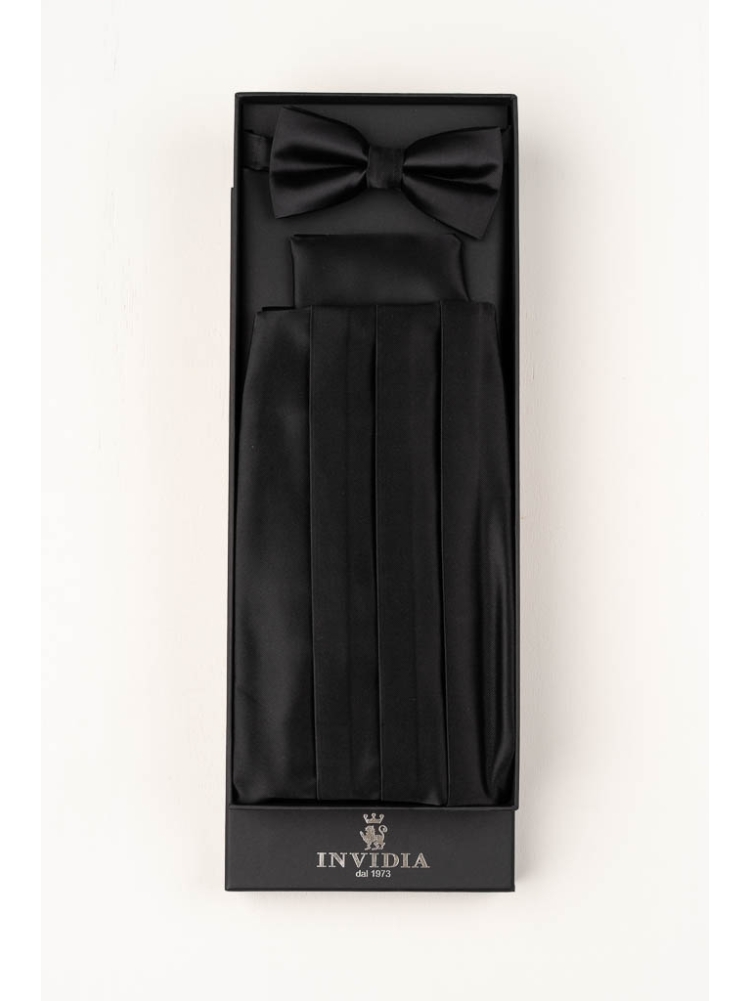 Completo da smoking con papillon , fusciacca e pochette
