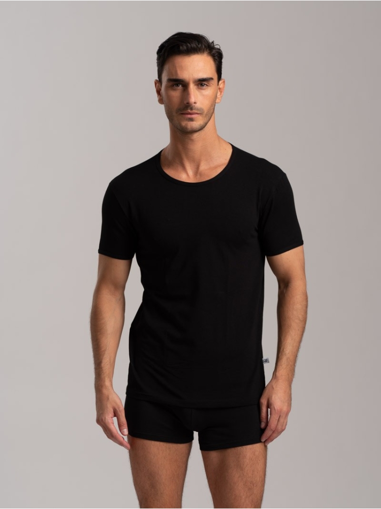 Maglietta intima uomo girocollo, realizzata in cotone jersey elasticizzato tinta unita