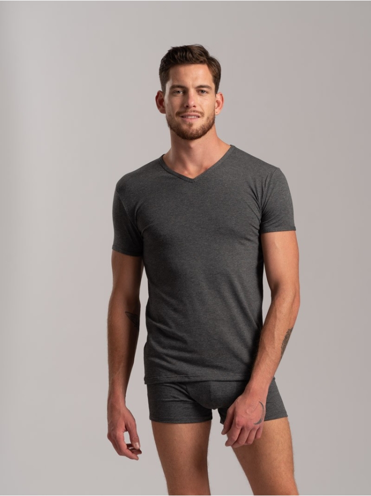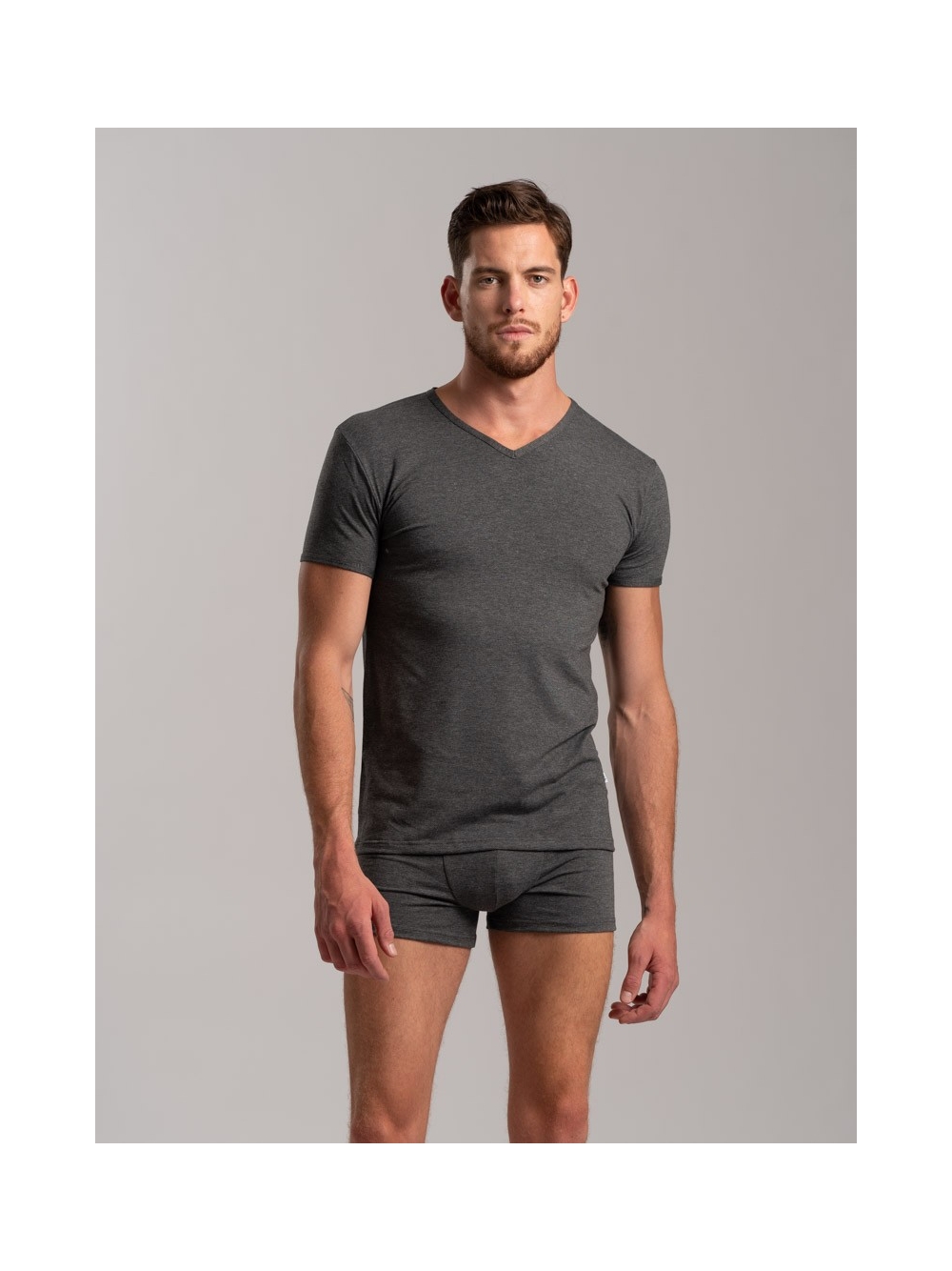 Maglietta intima uomo scollo a V, realizzata in cotone jersey elasticizzato tinta unita