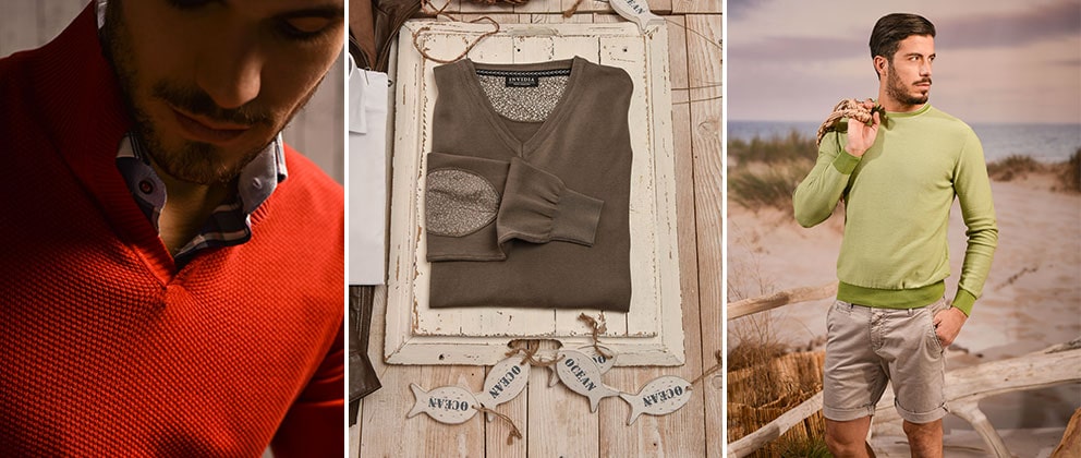 I colori abbandonano le cromie “urlate” protagoniste della scorsa stagione per rifugiarsi nei più classici blu, grigio e verde militare. Modelli per un uomo elegante ma meno “impacchettato” anche quelli della maglieria: nelle nuove collezioni, alle versioni girocollo e scollo a V si alternano anche cardigan con zip e maglioni-polo senza bottoni.