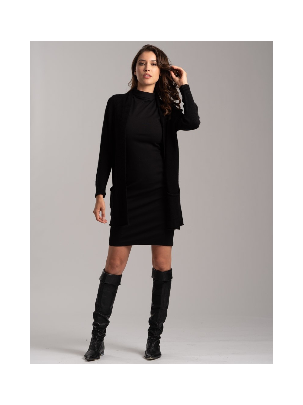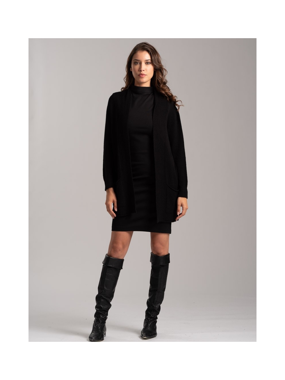 Cardigan donna lungo con tasche, realizzato con filato di viscosa ultra comfort.