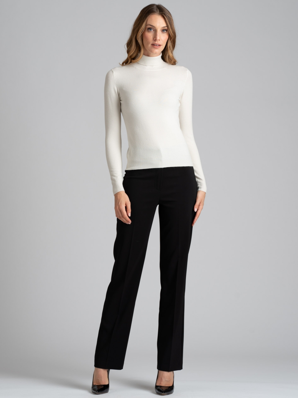Maglia donna modello dolcevita basic. La maglia è in tessuto misto viscosa finezza 12 ed è disponibile nelle varianti colore panna, grigio perla e nero.