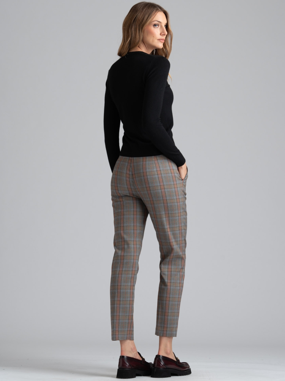 Maglia donna scollo a V finezza 12 in tessuto misto viscosa tinta unita.