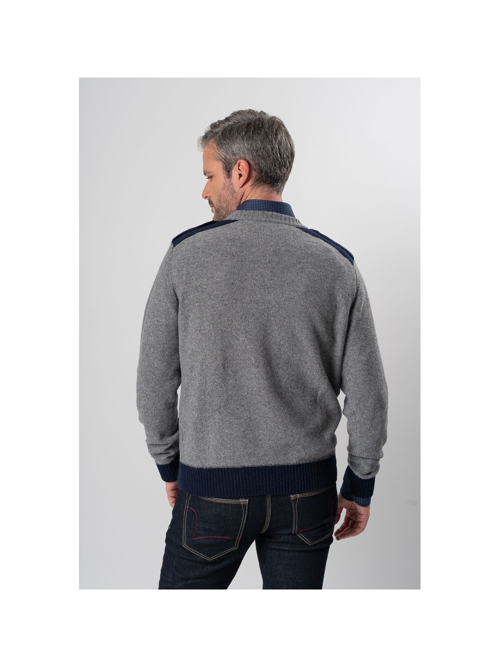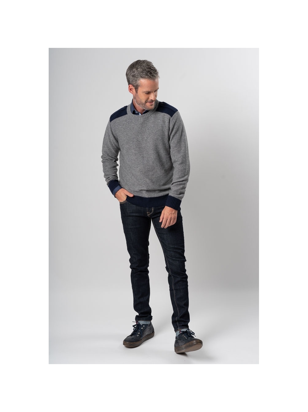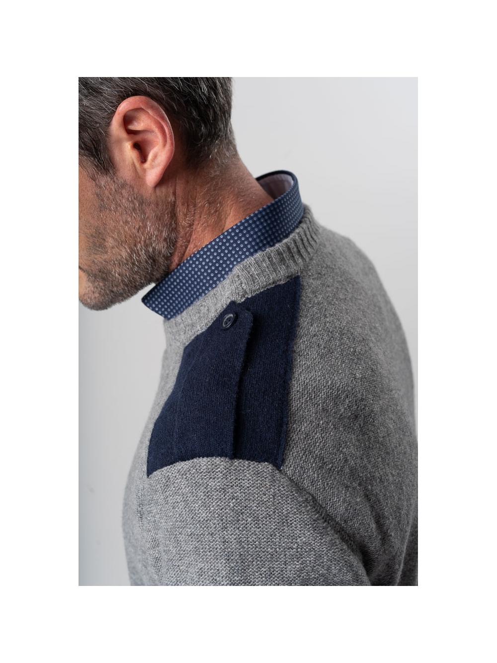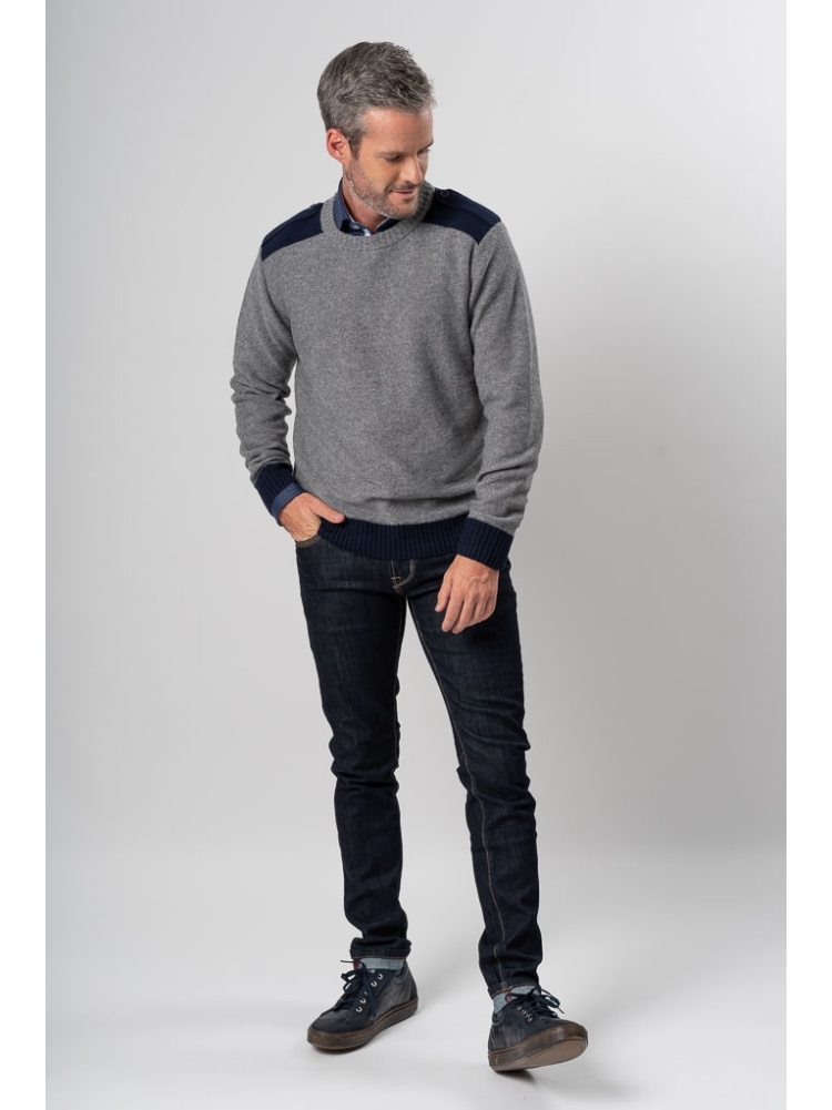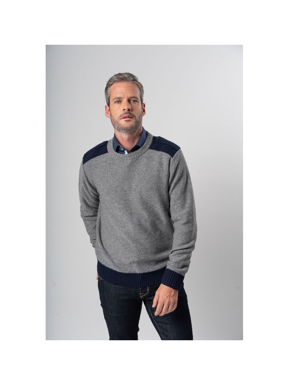 Maglia uomo girocollo finezza 7 con particolare lavorazione del filato a rovescio , il design stile navy di questo modello , caratterizzato dalle alette con bottoni sulle spalle, lo rendono un capo essenziale, comodo, di gran fascino.