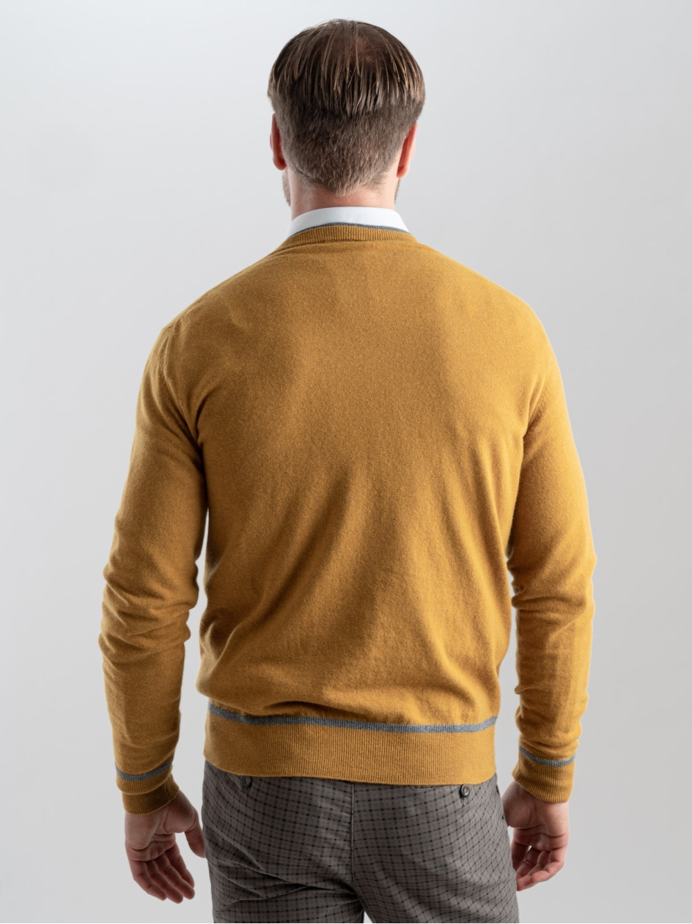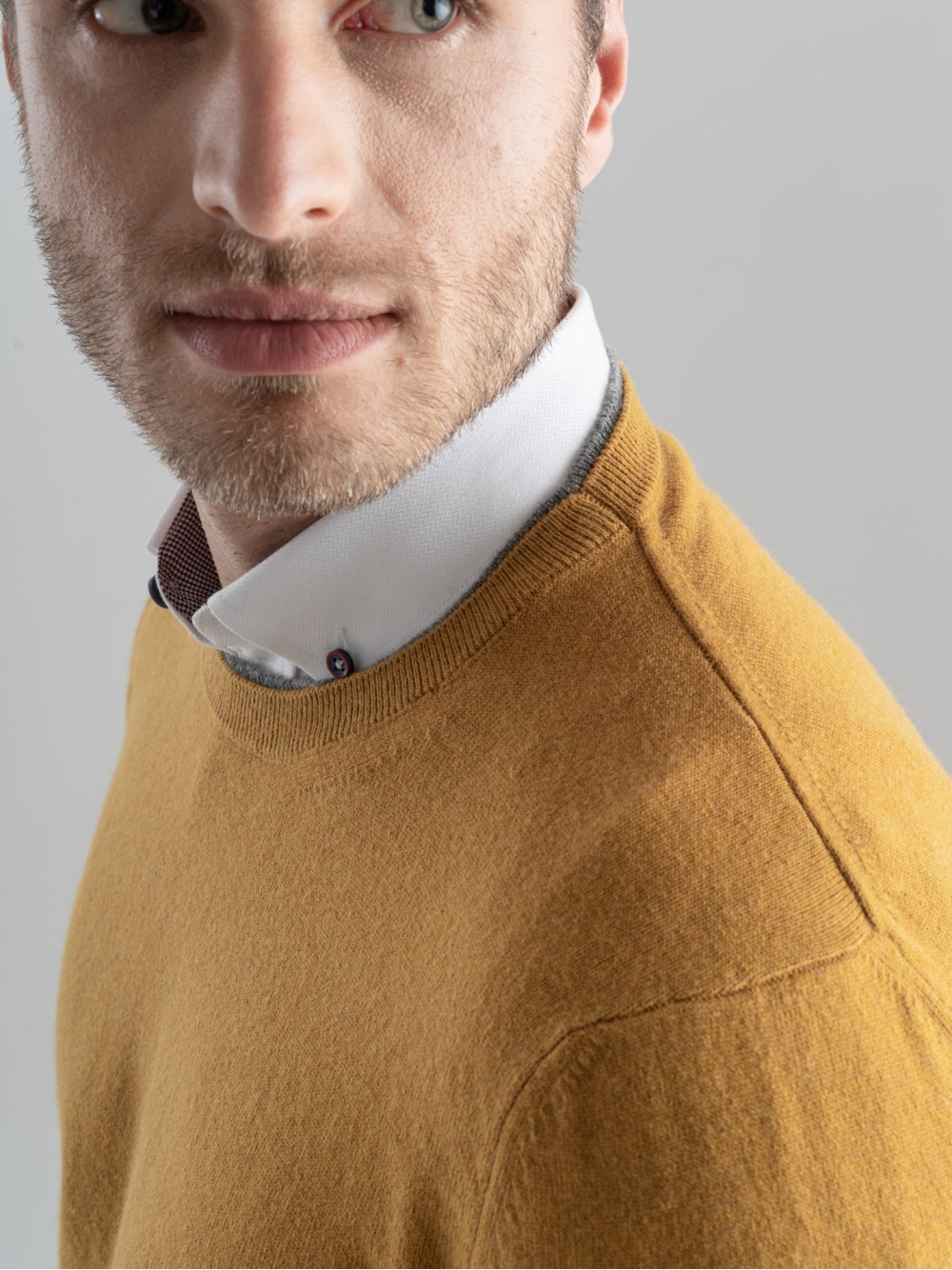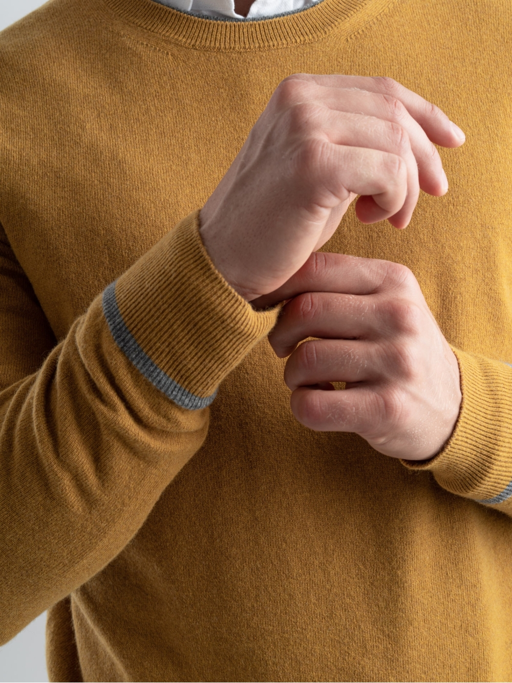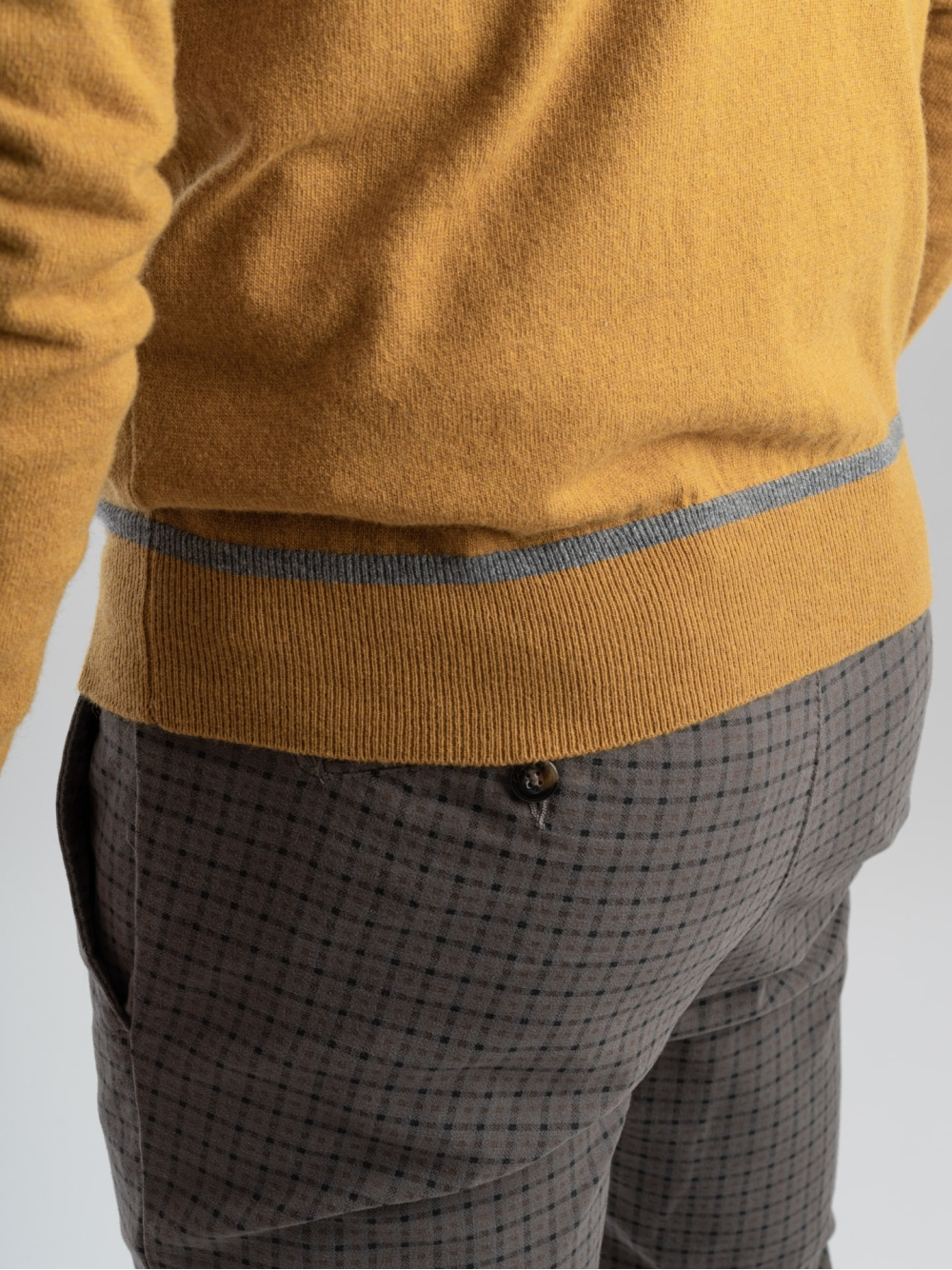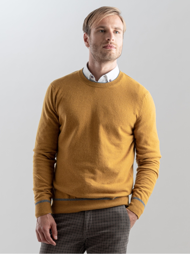 Maglia uomo girocollo realizzato in lana misto cashmere,impreziosito dai piping in colore a contrato sulle maniche, collo e sul fondo. Un musth have su cui puntare per il tuo guardaroba invernale.