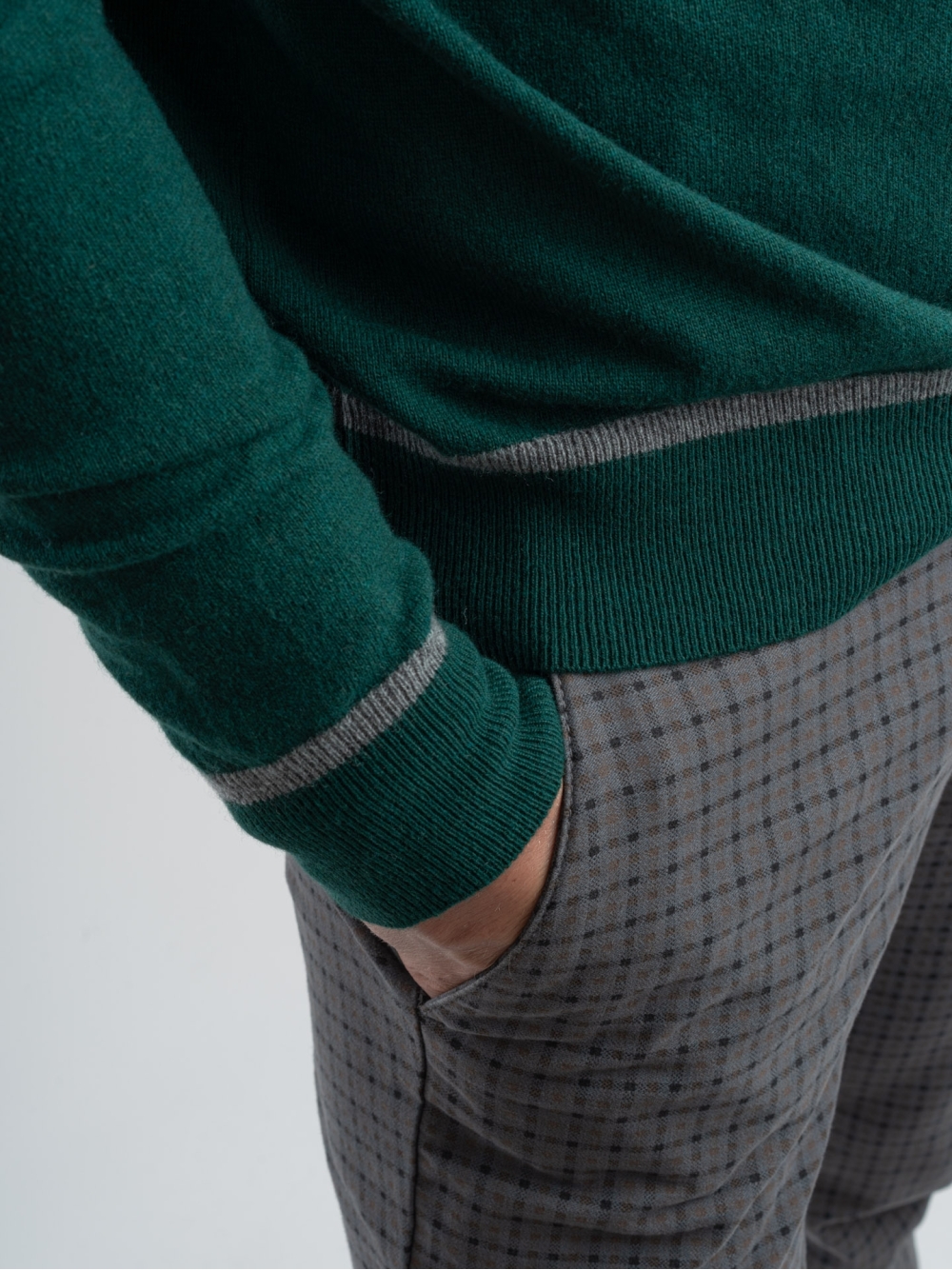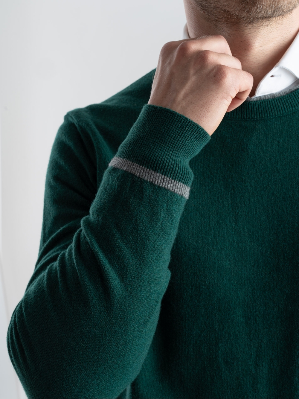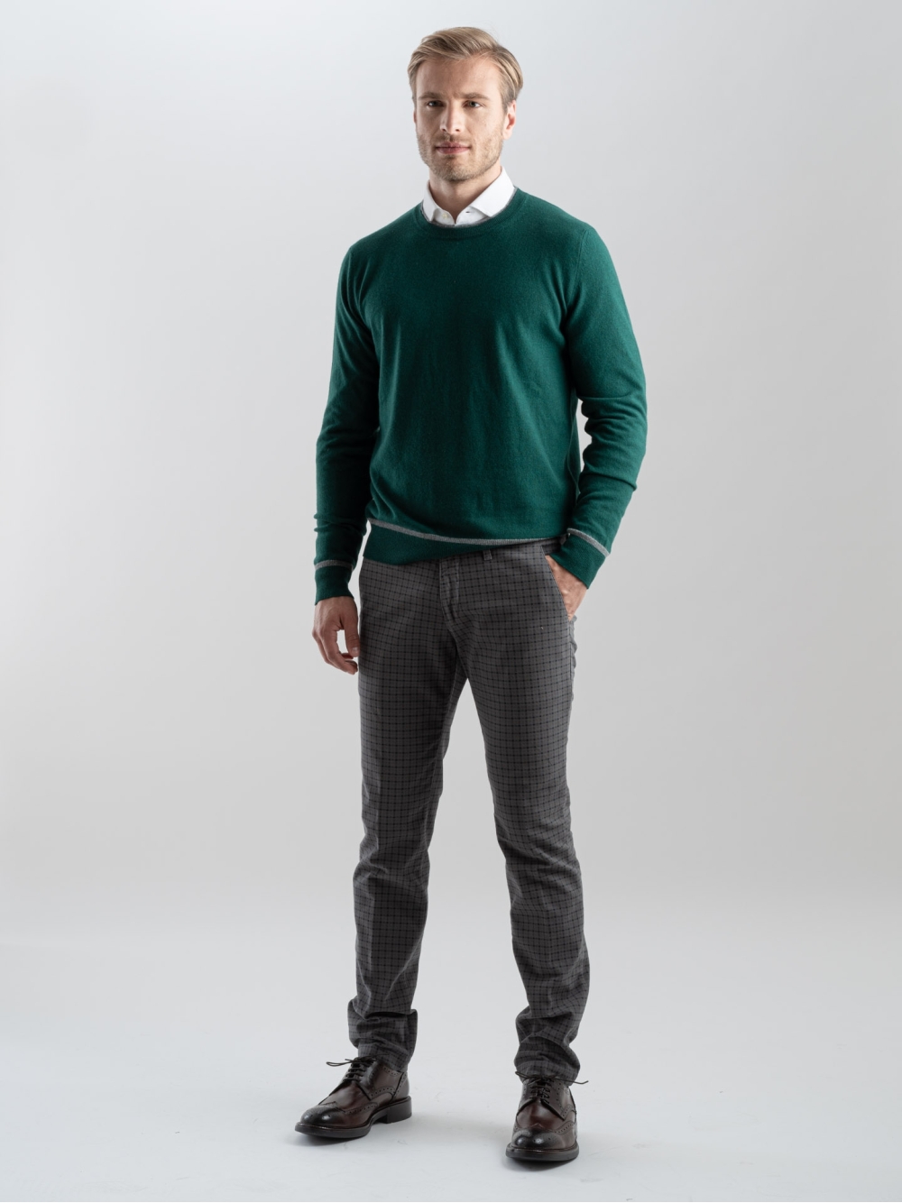 Maglia uomo girocollo realizzato in lana misto cashmere,impreziosito dai piping in colore a contrato sulle maniche, collo e sul fondo. Un musth have su cui puntare per il tuo guardaroba invernale.