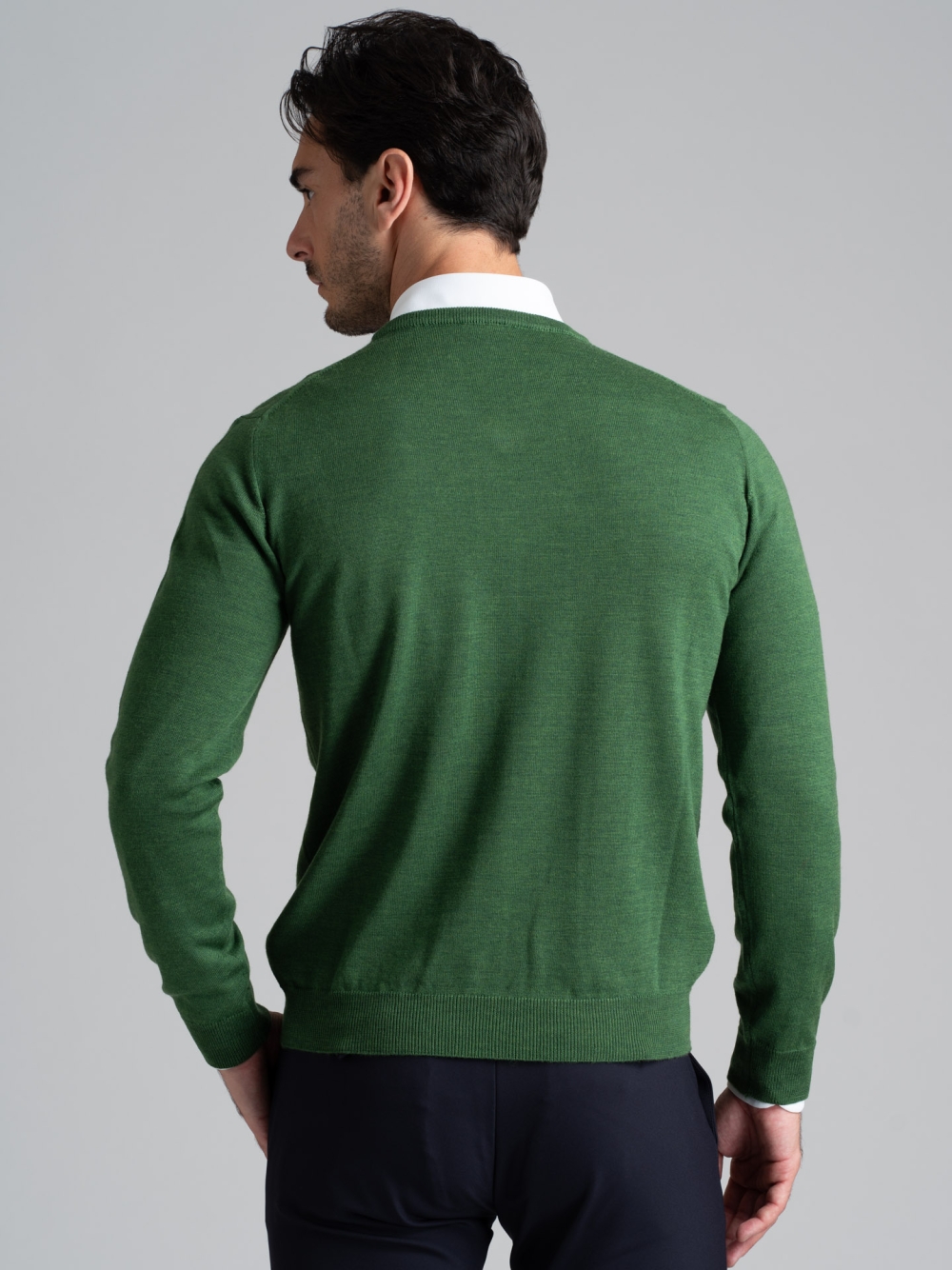 Maglia uomo scollo a V in tinta unita lana 100% merinos. Un capo essenziale per la sua versatilità che non può mancare nel tuo armadio. Adatto ad ogni tipo di occasione.