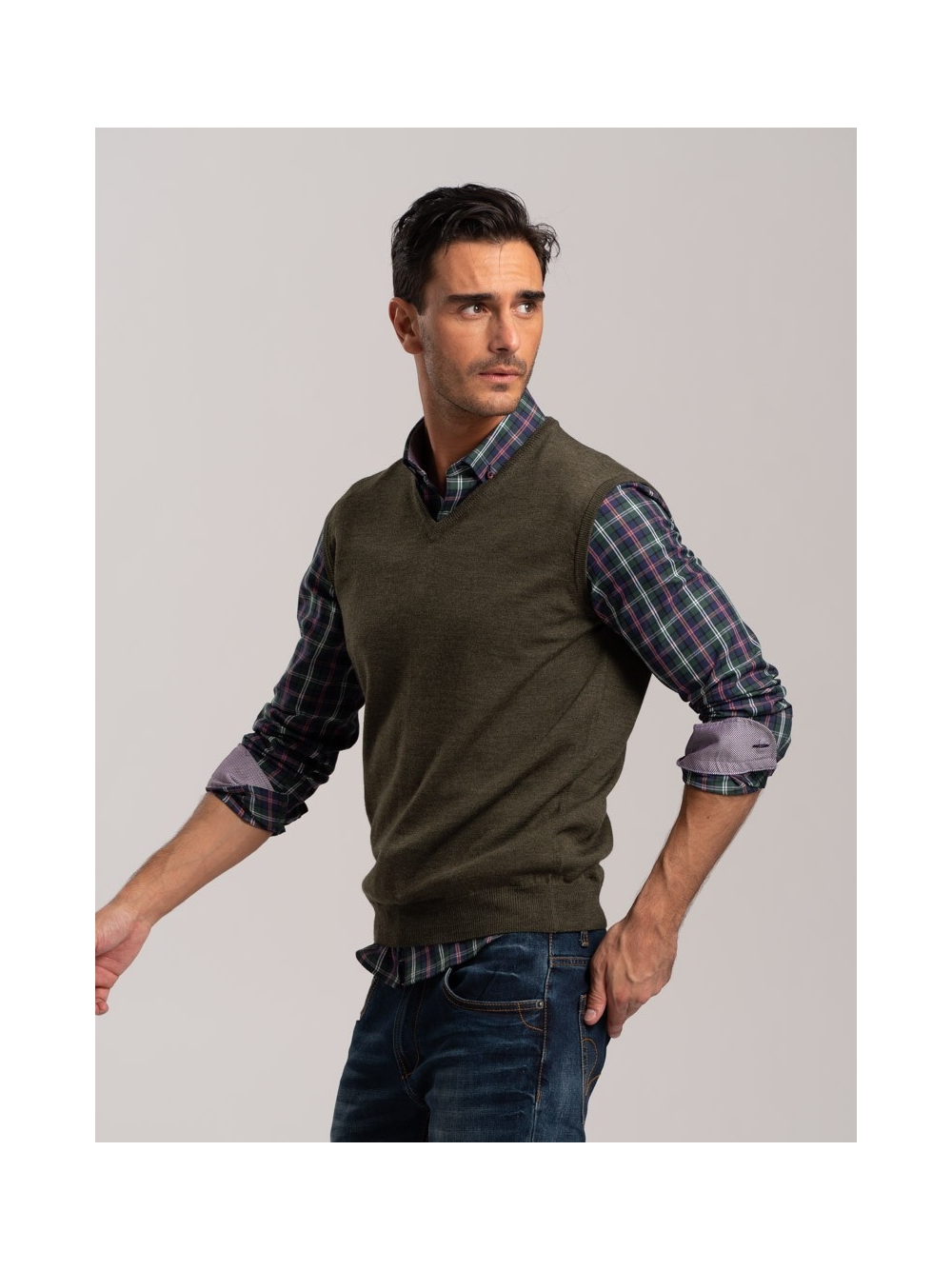 Gilet uomo smanicato scollo a V realizzato in lana merino.