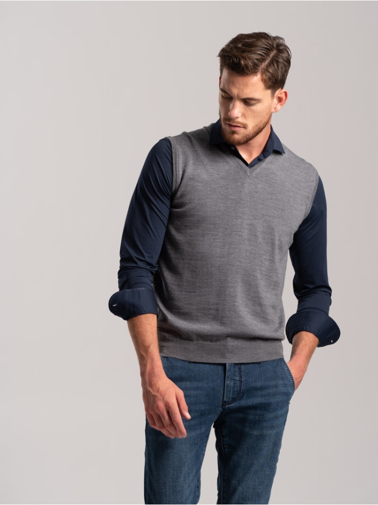 Gilet uomo smanicato scollo a V realizzato in lana merino.