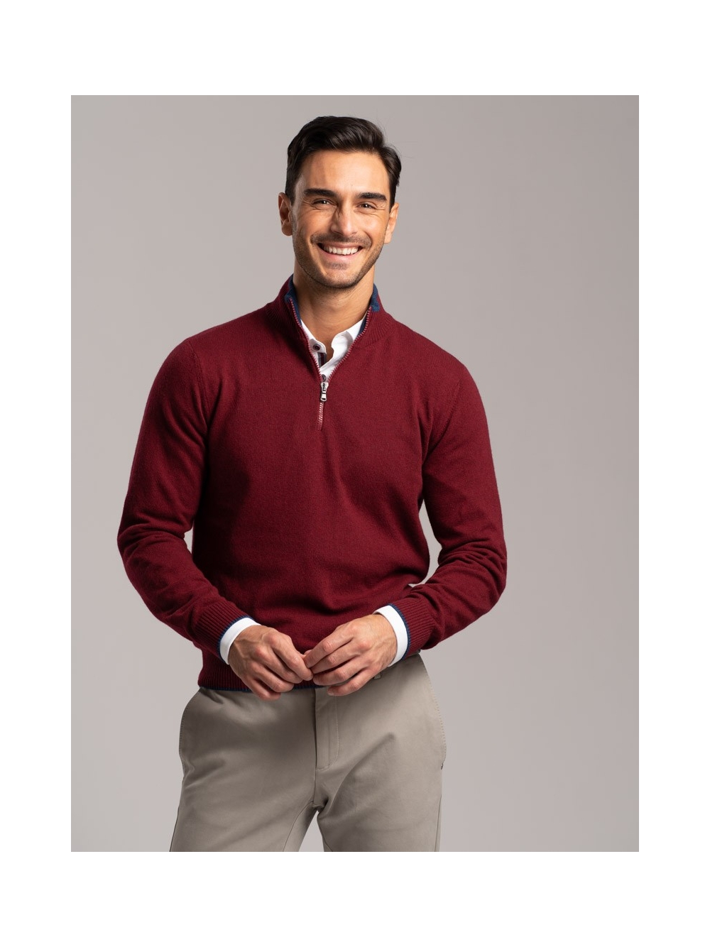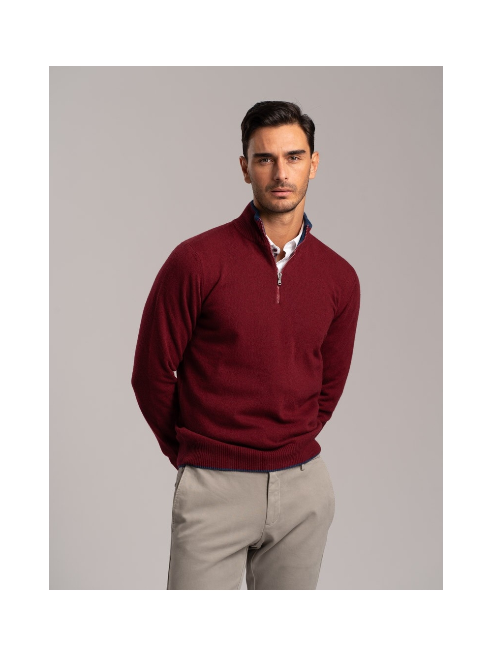 Maglia uomo lupetto misto Cachemire mezza zip