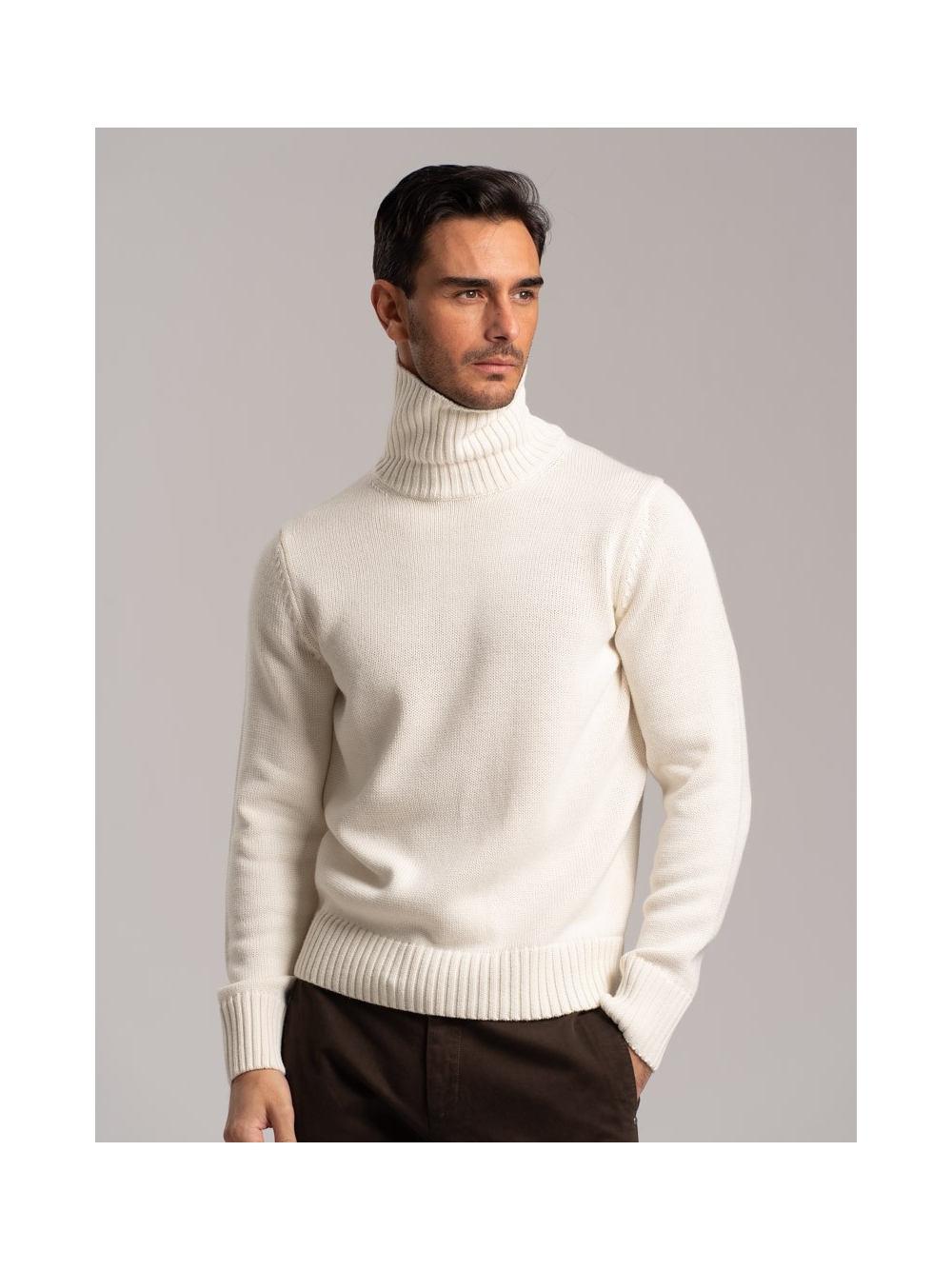 Maglia uomo dolcevita misto lana rasata.