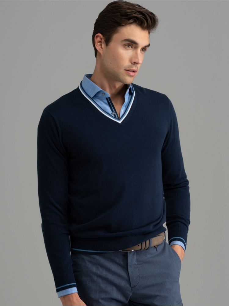 Maglia uomo con scollo a V con contrasti