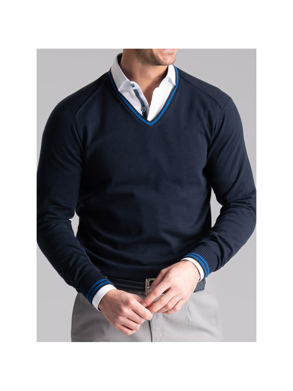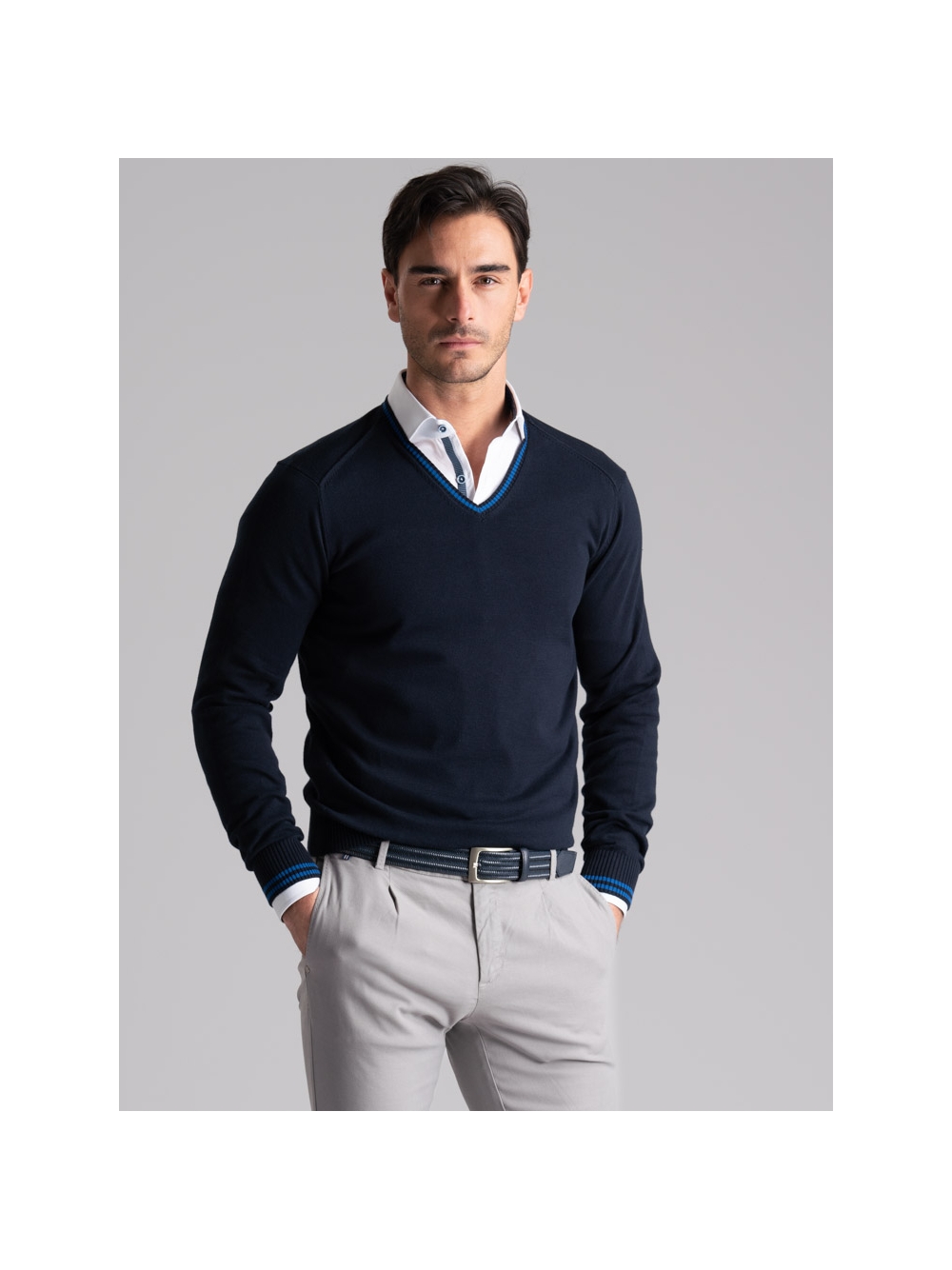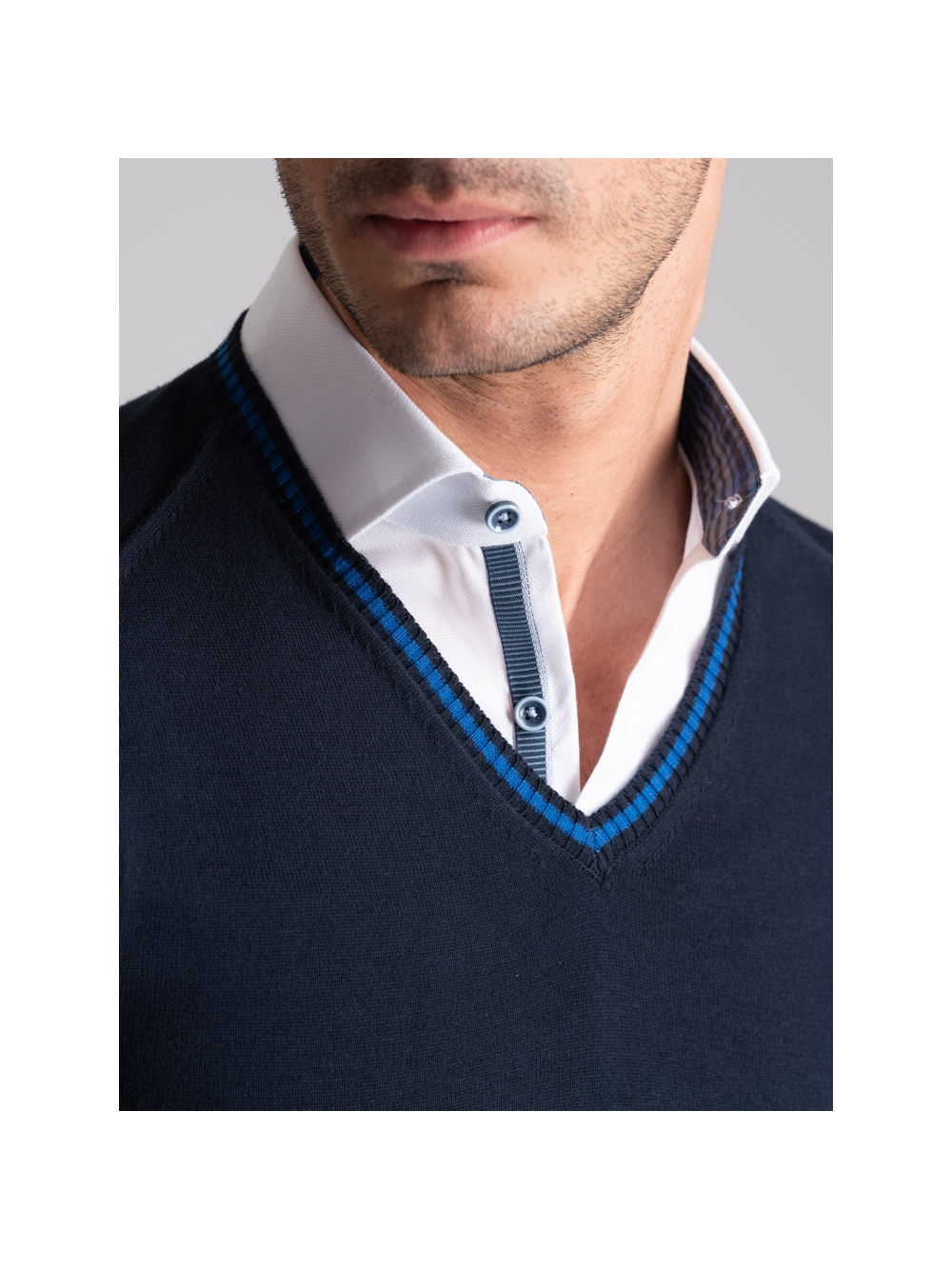 Maglia uomo in cotone scollo a V con contrasti
