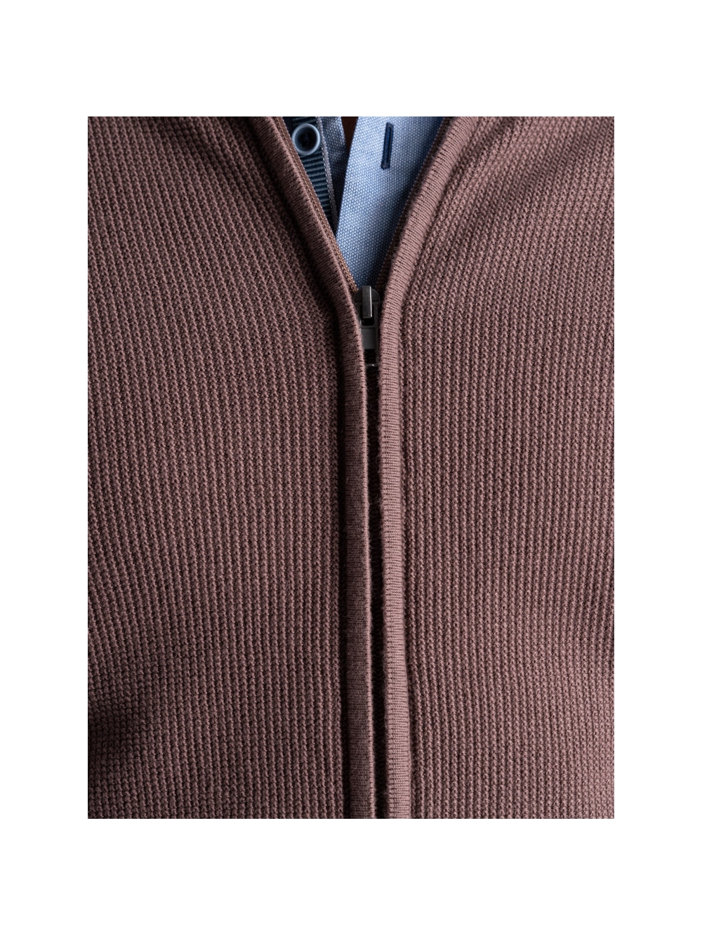 Maglia uomo full zip con tasche realizzata in cotone finezza 12 in tinta unita nelle varianti blu e tortora, con linee a contrasto sulla taschina e gli interni collo. Questa maglia è caratterizzata da una lavorazione a chicco di riso sul davanti e doppio cursore per l’allacciatura.