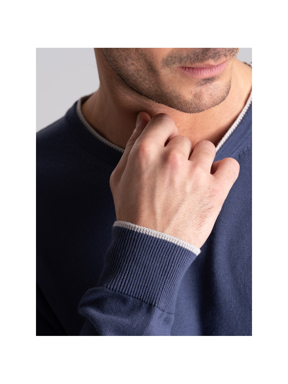 Maglia uomo girocollo con doppio collo e contrasti