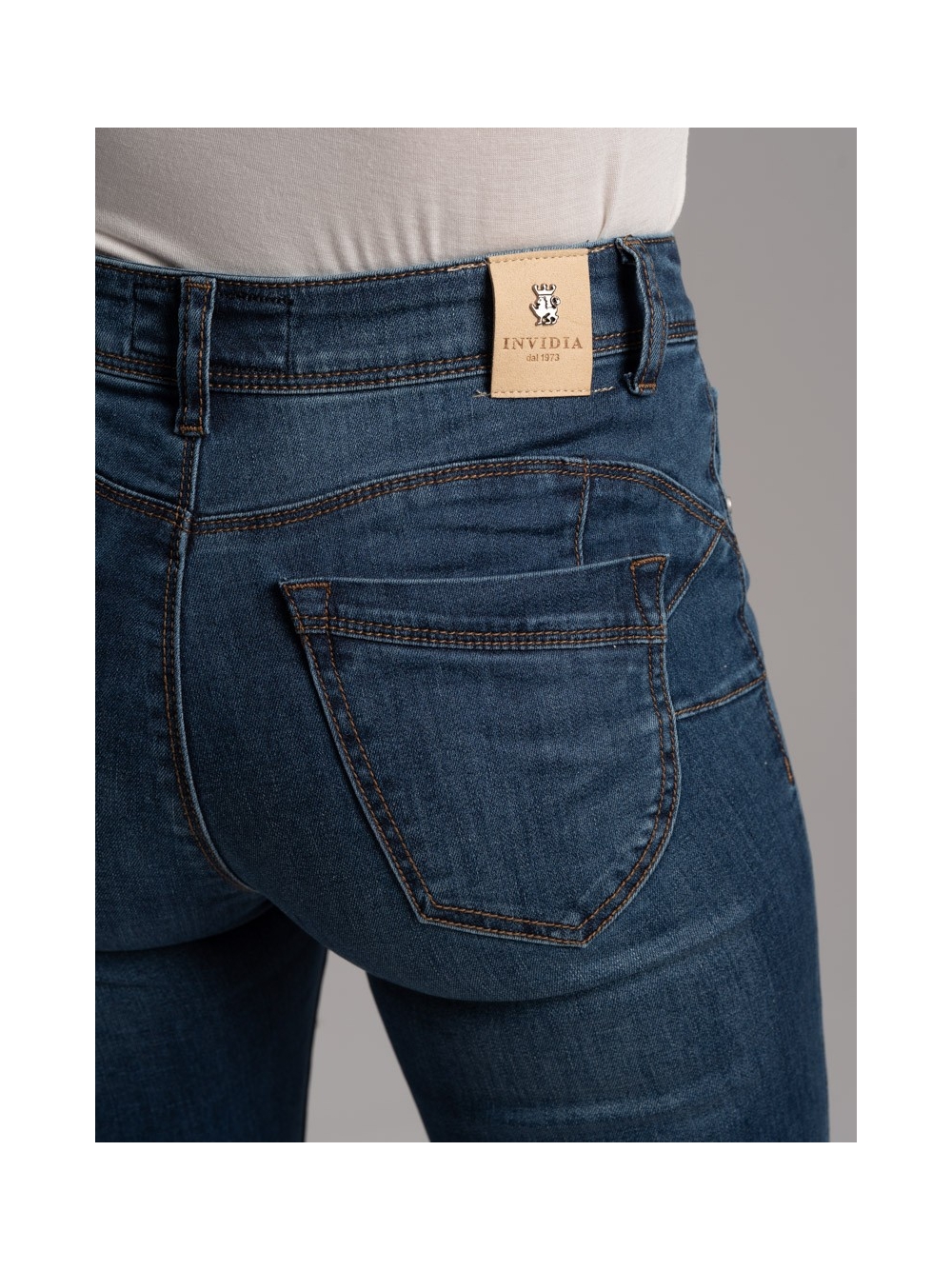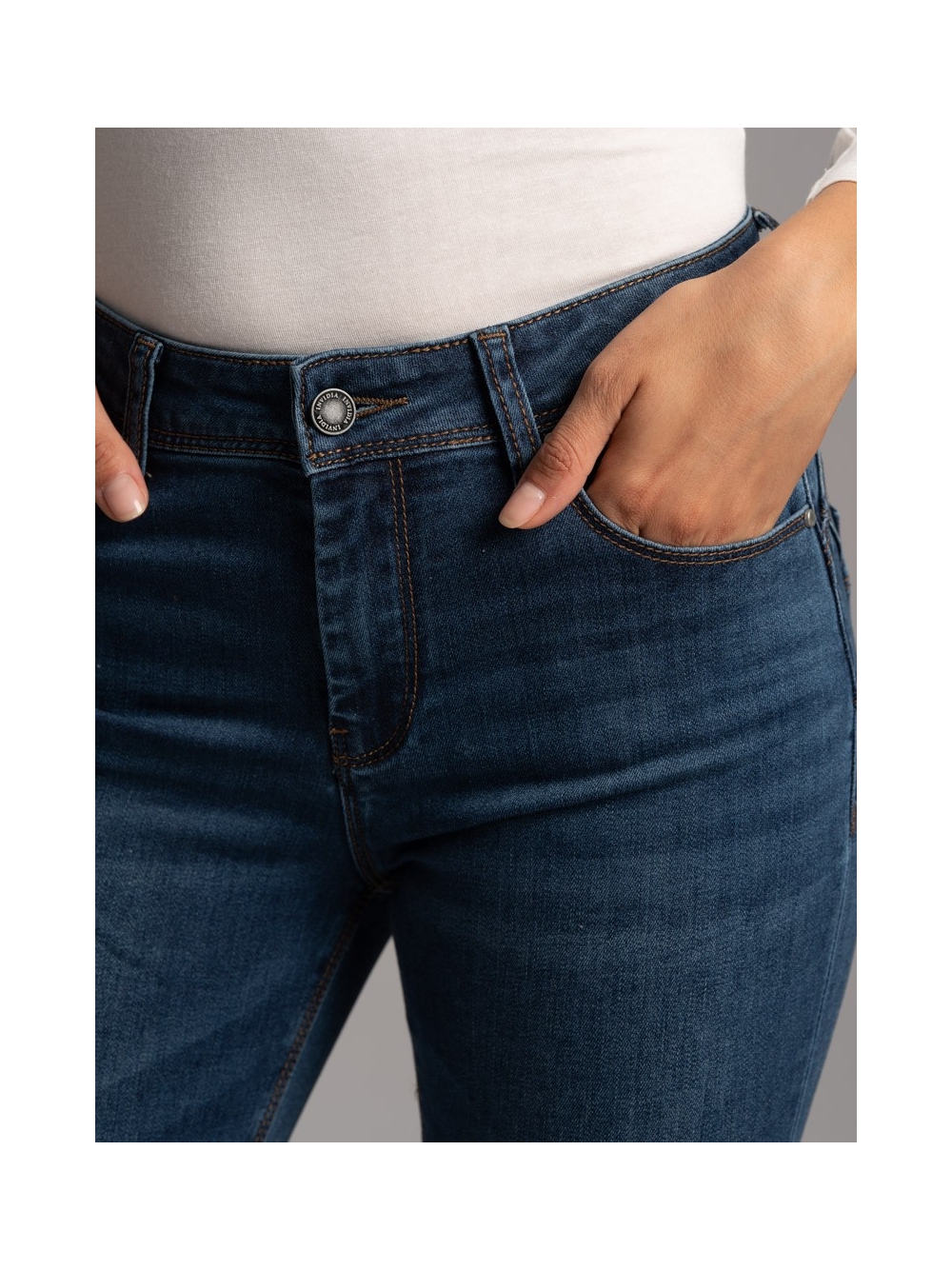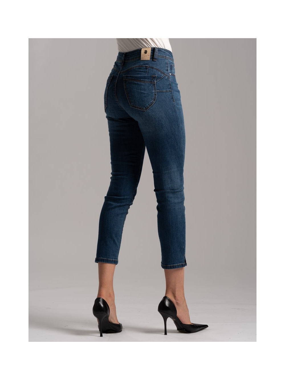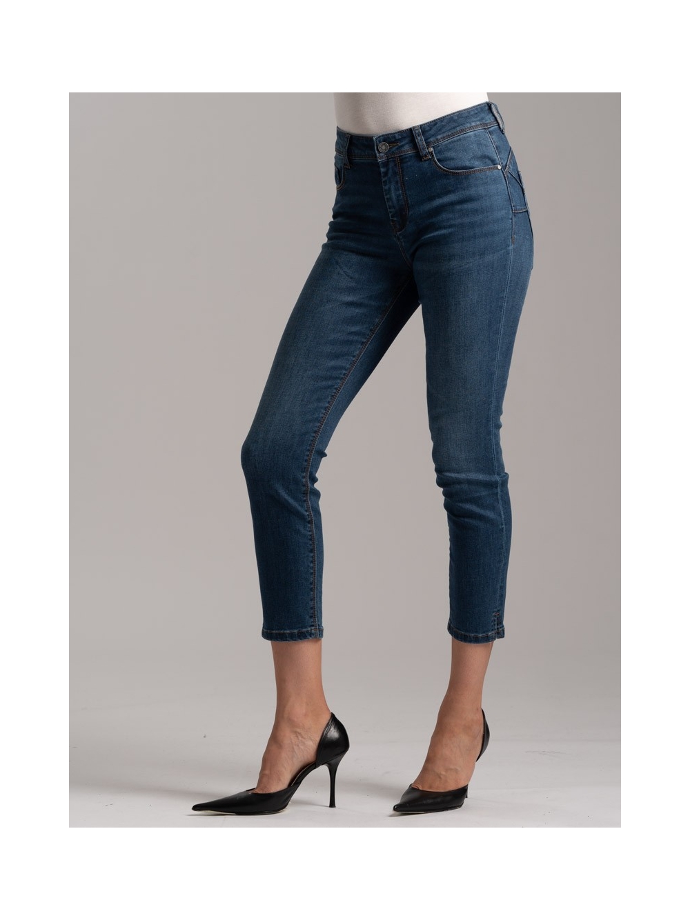 Jeans donna Denim stretch lavaggio medio, vestibilità slim, con spacco sul fondo.