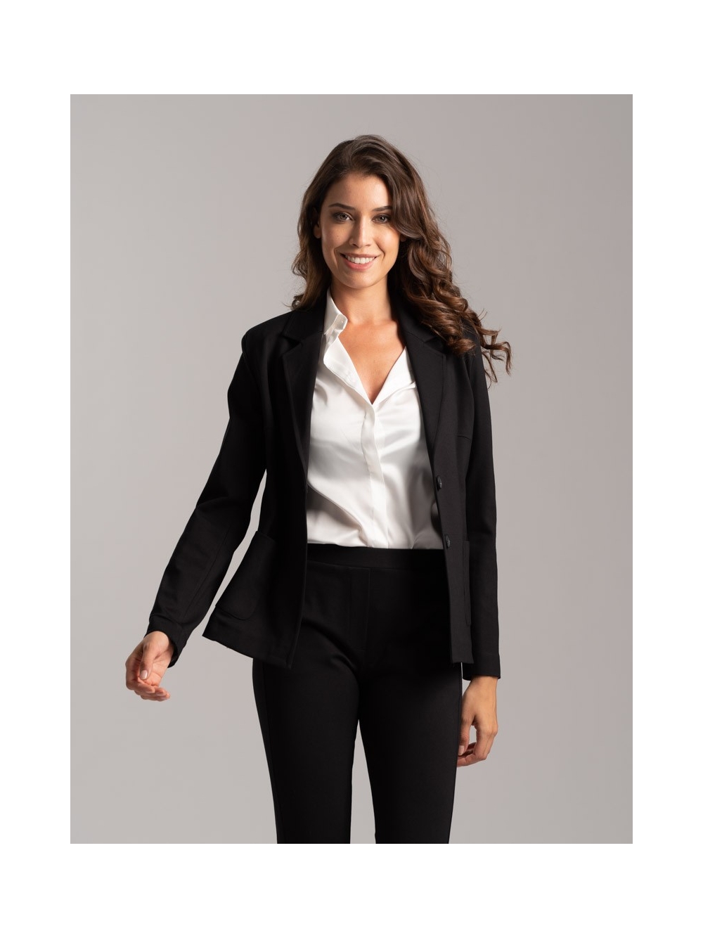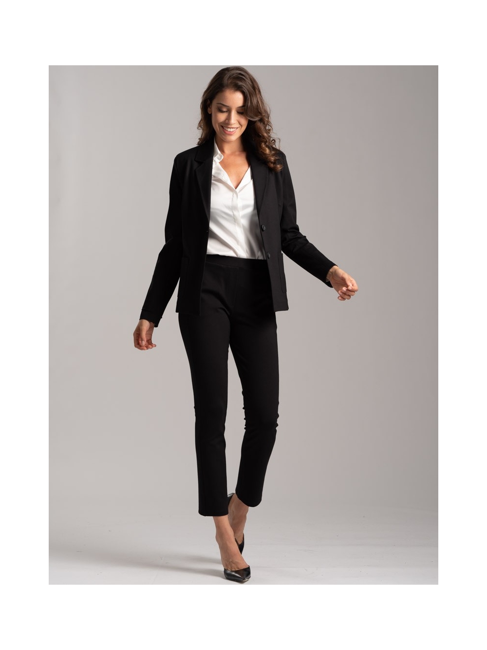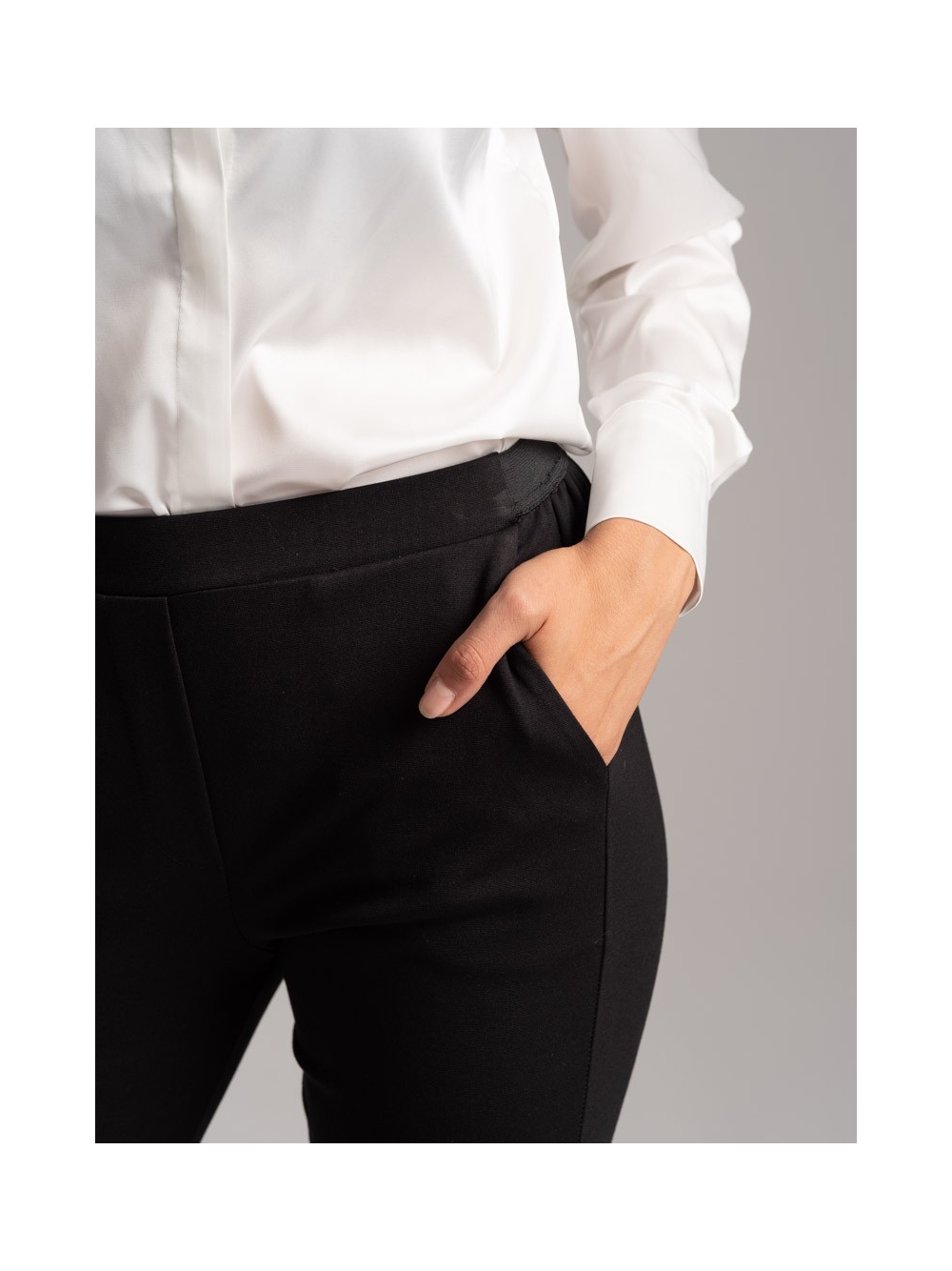Pantalone donna realizzato in Punto Milano, vestibilità sigaretta con elastico in vita dietro.