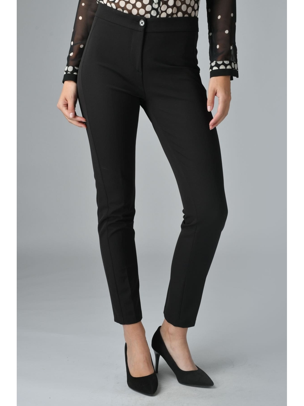 Pantalone donna a sigaretta realizzati in tessuto tessuto tecnico stretch, chiusura con zip e bottone .
