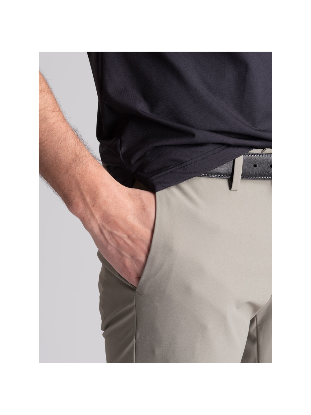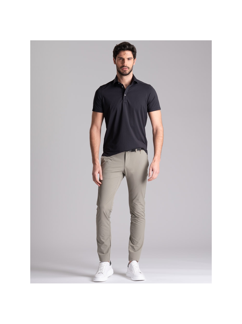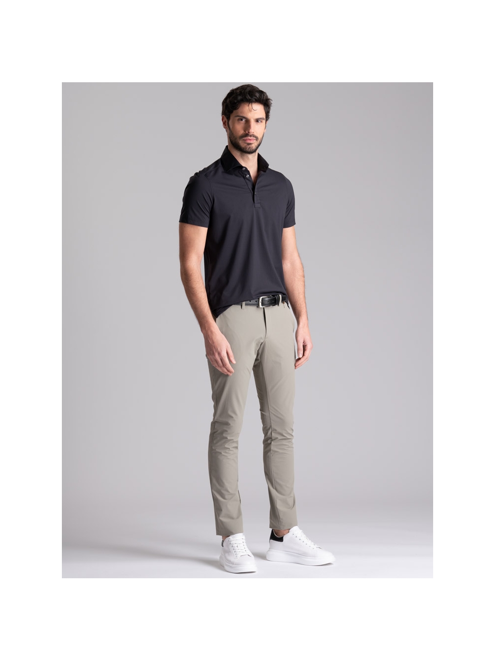 Pantalone uomo modello chino realizzato in confortevole tessuto TECNO effetto crêpe, traspirante e no pieghe, rifinito con attenzione sartoriale.