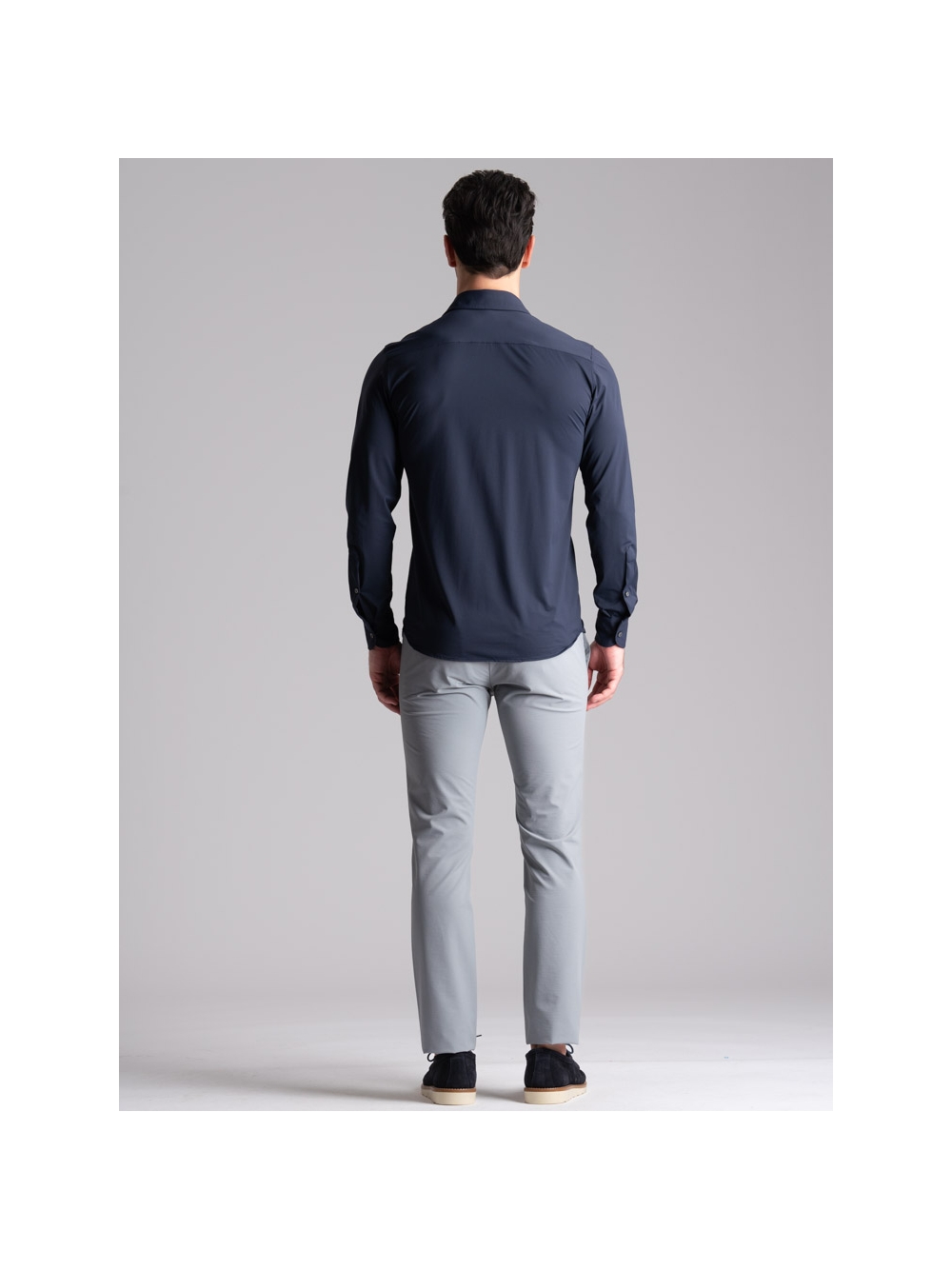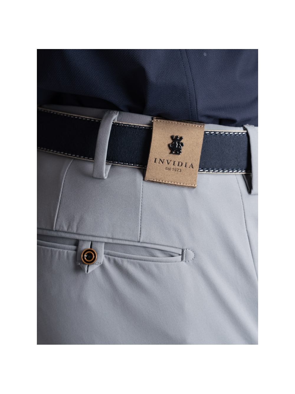 Pantalone chino realizzato in tessuto TECNO, l’innovativo materiale tecnico che dona grande libertà di movimento, traspirabilità e resiste alle pieghe. Il classico modello chino TECNO presente nella linea di abbigliamento uomo firmata INVIDIA 1973, per la collezione primavera estate 2024 si rinnova grazie ad un interessante effetto crêpe che dona al pantalone un aspetto nuovo. Questo modello è perfettamente rifinito sia esternamente, con tasche dietro a filetto con bottone e picanello, che internamente, con fodera e laccetti per appenderlo. Il pantalone uomo TECNO si distingue per una linea slim, la vestibilità confortevole e una realizzazione semisartoriale che emerge dalla presenza dello slargo con cucitura in aperto che consente di allargare il pantalone guadagnando una taglia e mezza. Disponibile in diversi colori – blu, verde militare e grigio medio – il pantalone chino TECNO può essere abbinato alla giacca uomo realizzata nello stesso tessuto e colore (grigio medio e blu) per creare un completo elegante e giovanile allo stesso tempo, da indossare in ufficio o ad una cerimonia, come invitato.