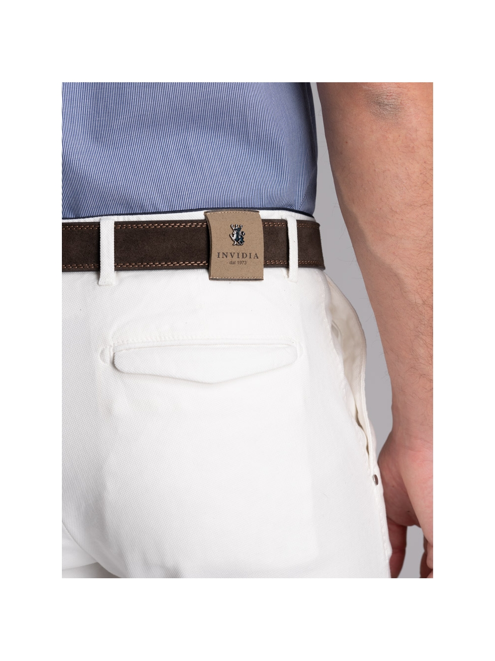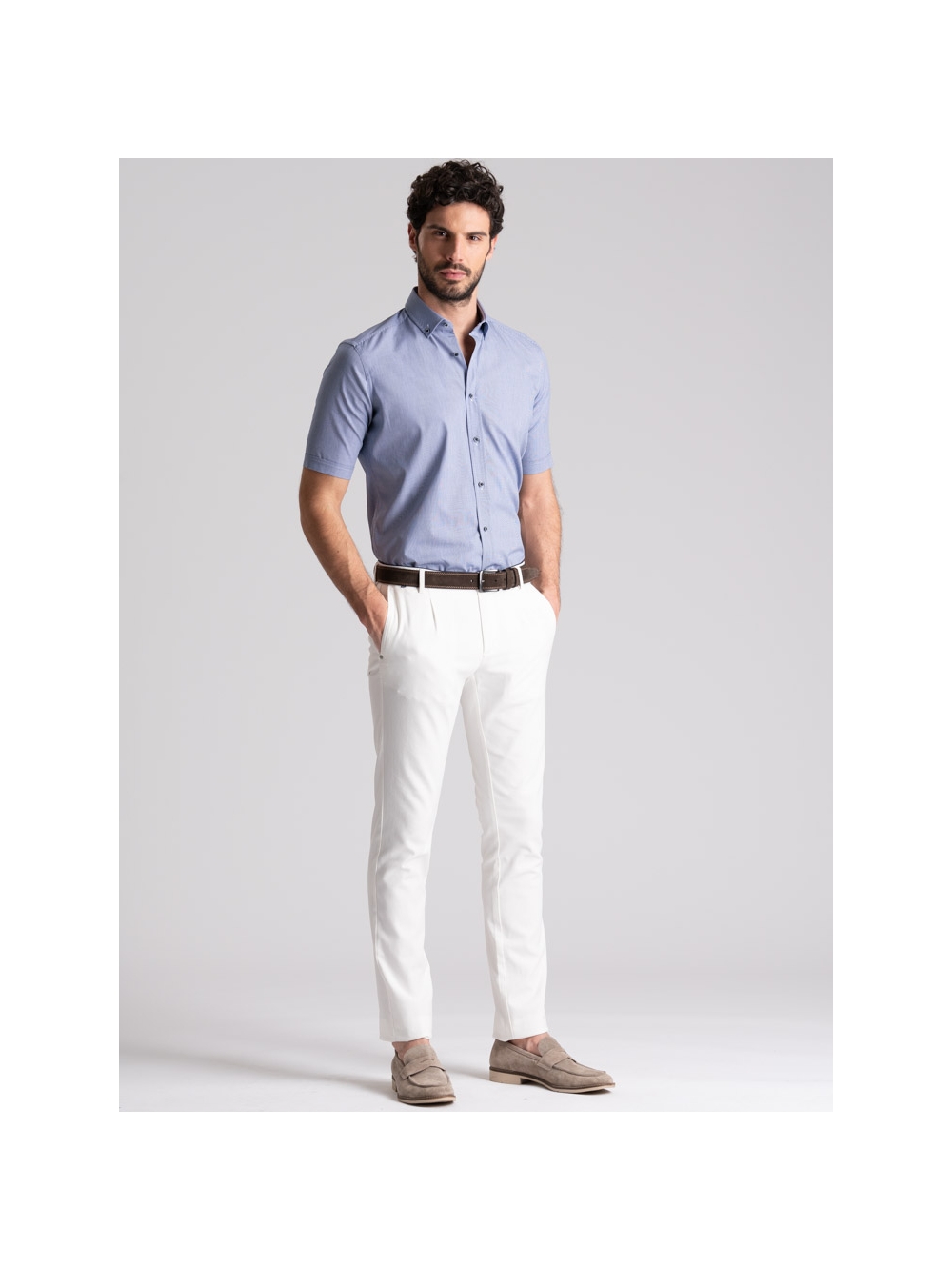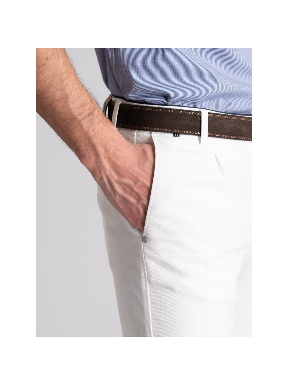 Pantalone chino in tessuto di cotone stretch armaturato con lavaggio old. Questo modello si distingue per una realizzazione semisartoriale che emerge da diversi dettagli: le tasche posteriori con micro patelle, la ricca cintura interna con tessuto tono su tono, le micro pinces e l’impuntura AMF sulle tasche con borchietta. I pantaloni uomo modello chinos hanno una linea slim e una vestibilità confortevole e sono disponibili nelle varianti colore bianco, grigio e blu.