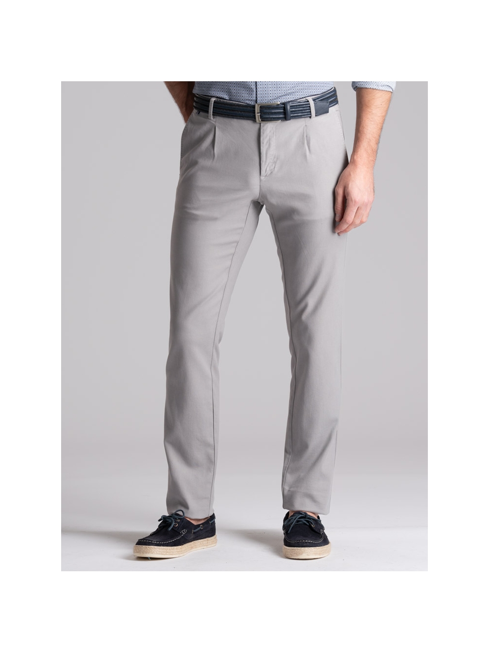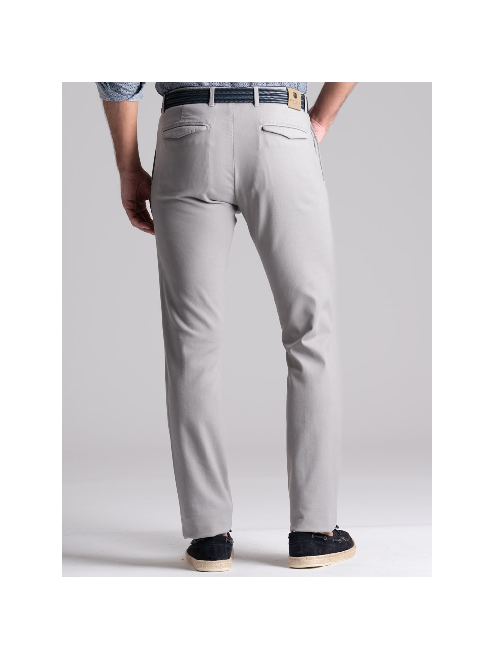 Pantalone uomo chino in tessuto di cotone stretch armaturato lavaggio old, con linea slim e una vestibilità confortevole.