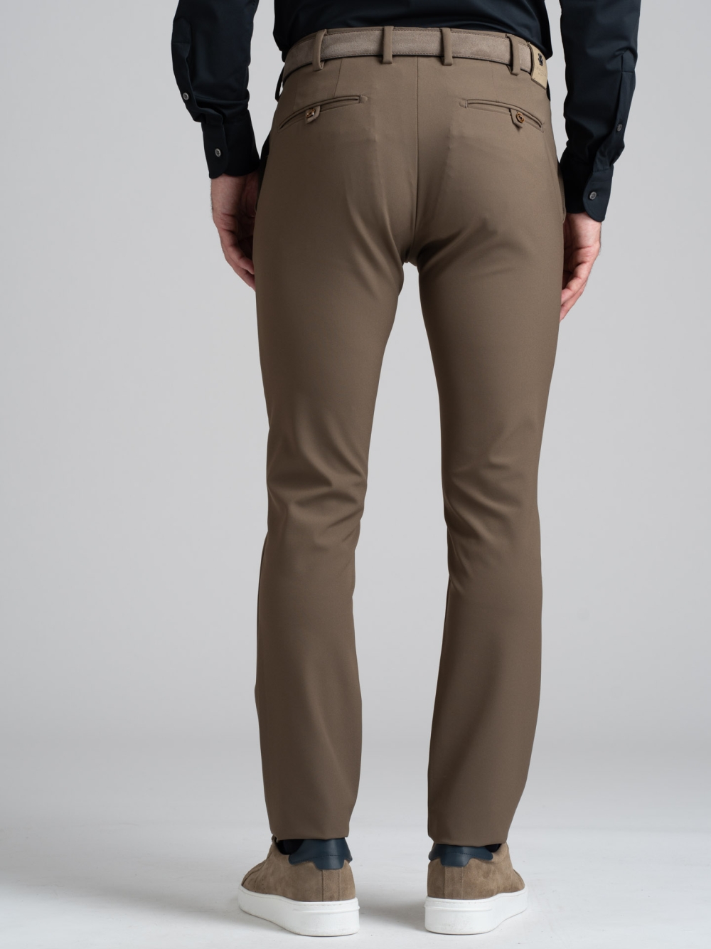 Pantalone uomo chino realizzato in tessuto TECNO stretch bielastico extra performante, no pieghe e traspirante. Caratterizzato da tasche a filetto con picanello sul retro e abbottonatura con sottopancia, è disponibile nella variante colore blu, tortora e nero. Il pantalone TECNO nella versione nera, può creare un completo uomo giovanile in abbinamento alla giacca uomo sfoderata realizzata nello stesso tessuto.