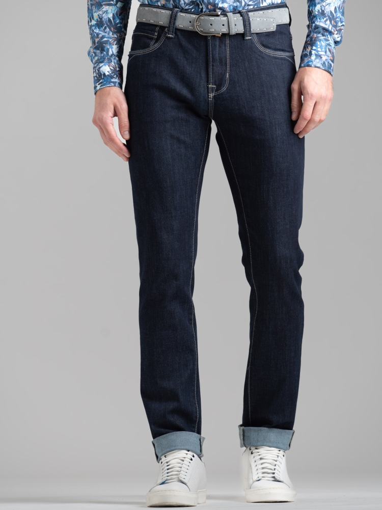 Jeans uomo 5 tasche blu scuro con cuciture a contrasto