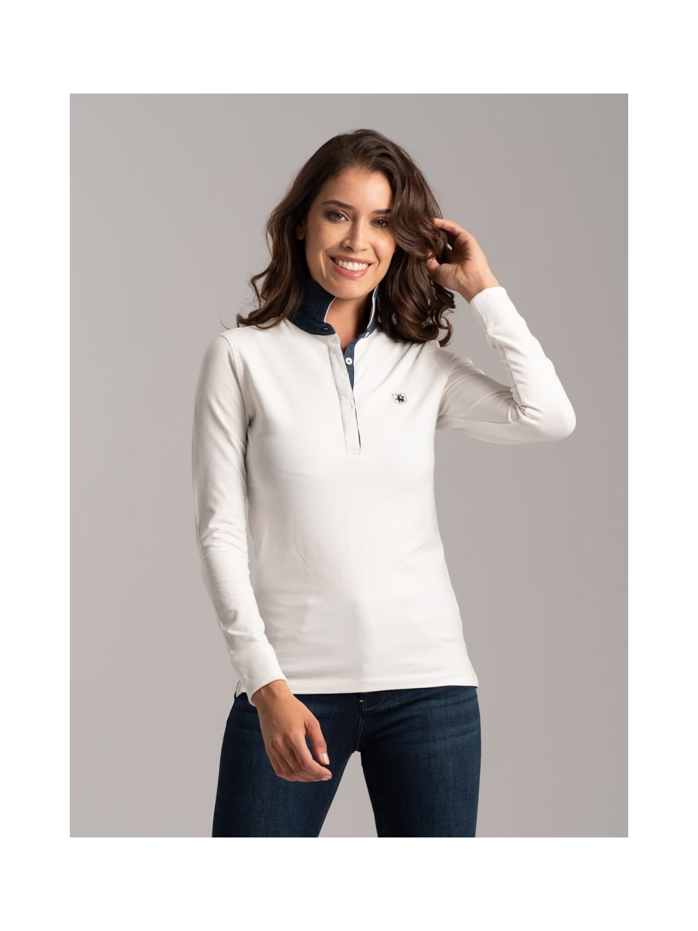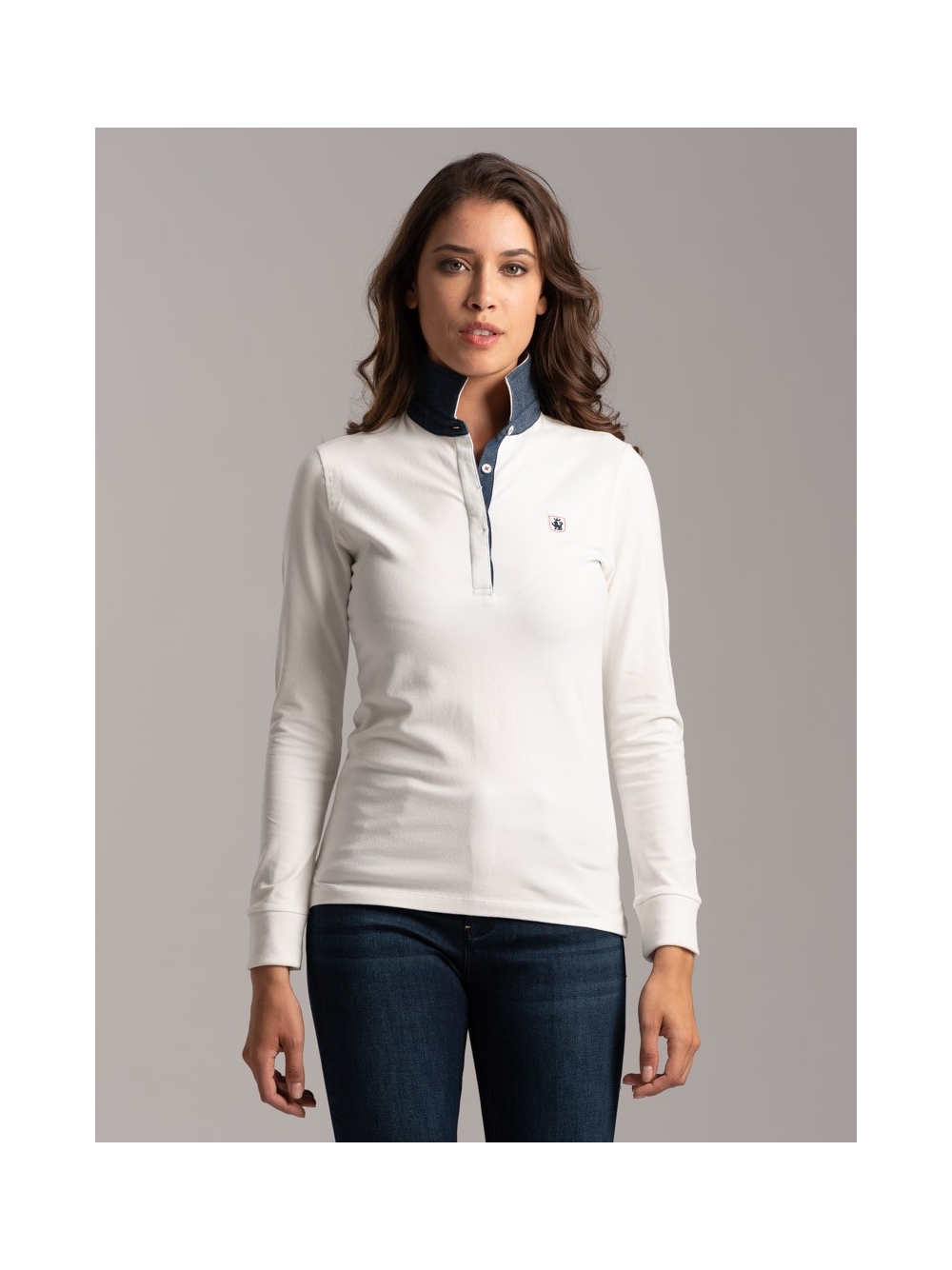 Polo donna jersey stretch con lunetta interno collo