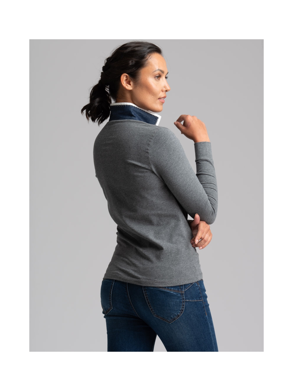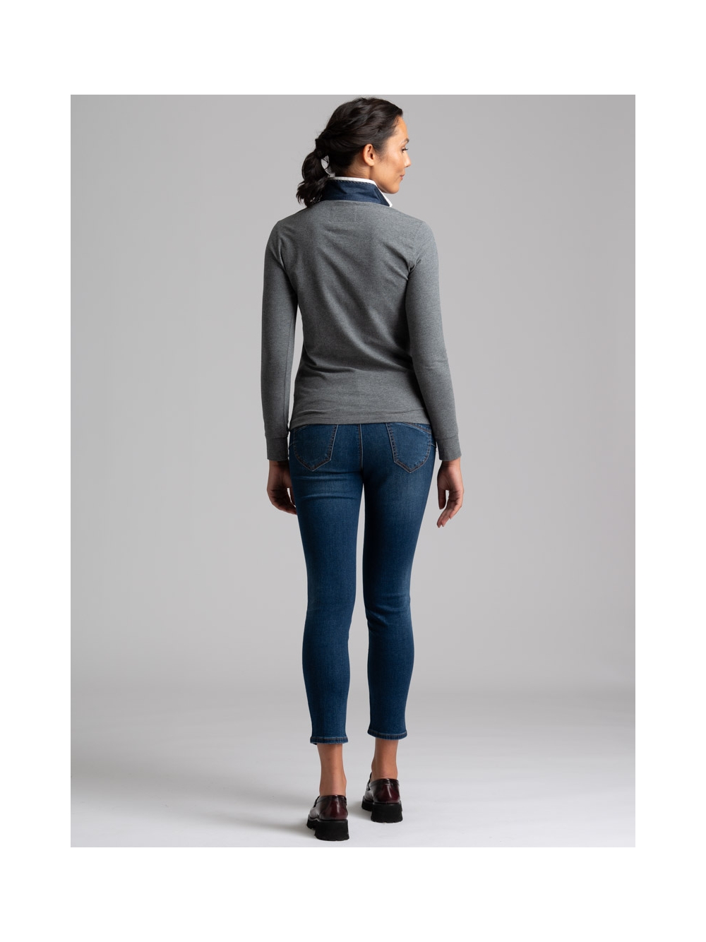 Polo donna a manica lunga con sotto collo a contrasto