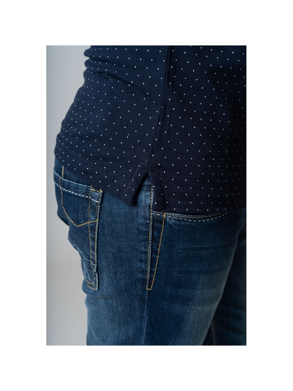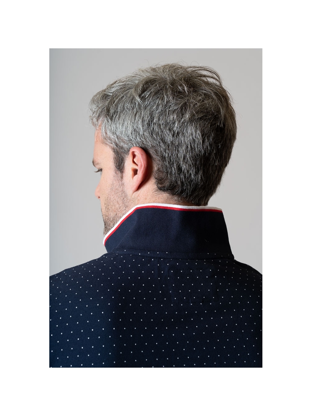 Polo uomo manica corta con stampa micro pois, particolari tocchi di colore a contrasto sulle rifiniture del colletto e delle maniche. Un capo da abbinare a jeans o pantaloni tinta unita per un outfit casual e di stile.