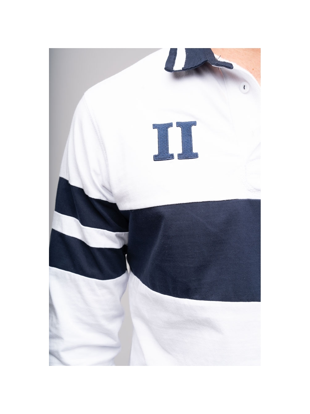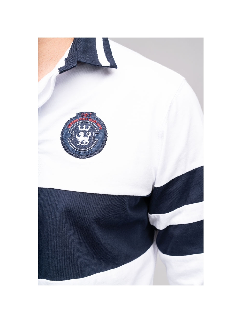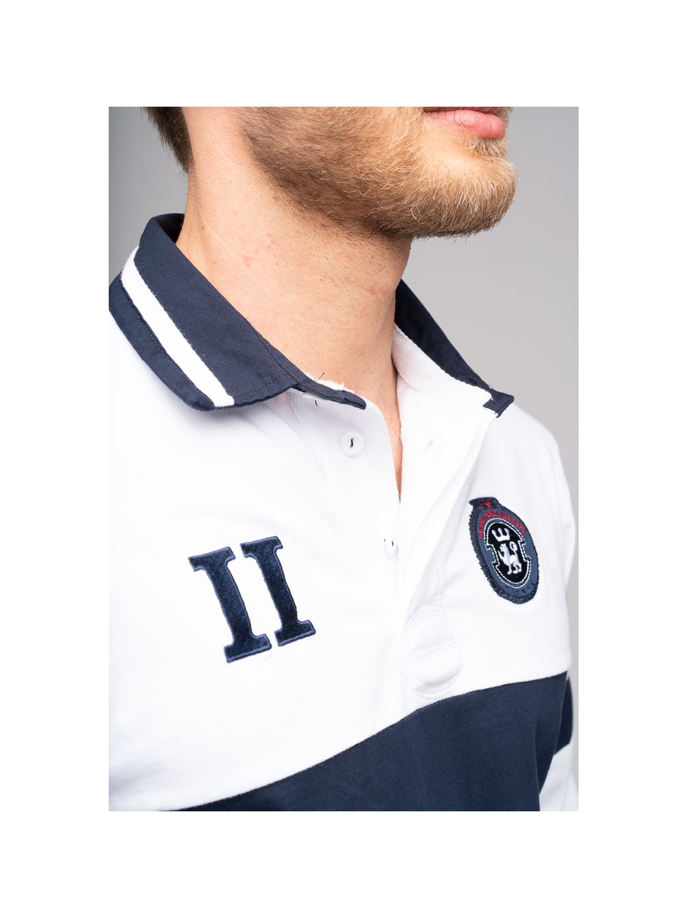Polo uomo manica lunga, realizzata in jersey in stile rugby, impreziosita da inserti in tessuto a contrasto e patch ricamato.