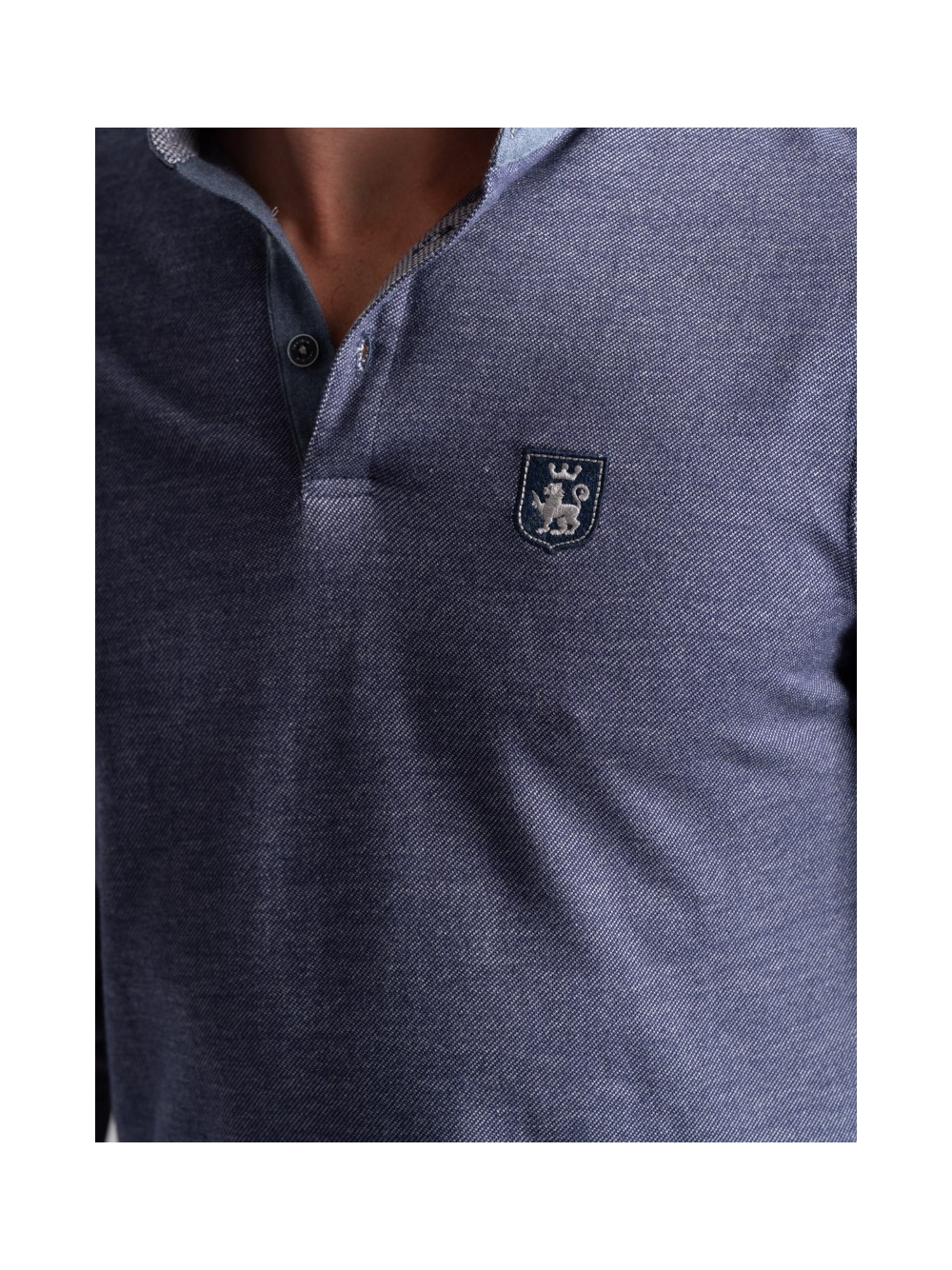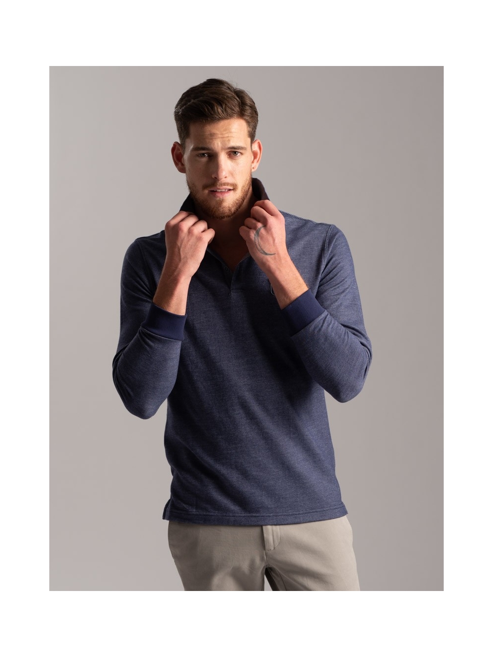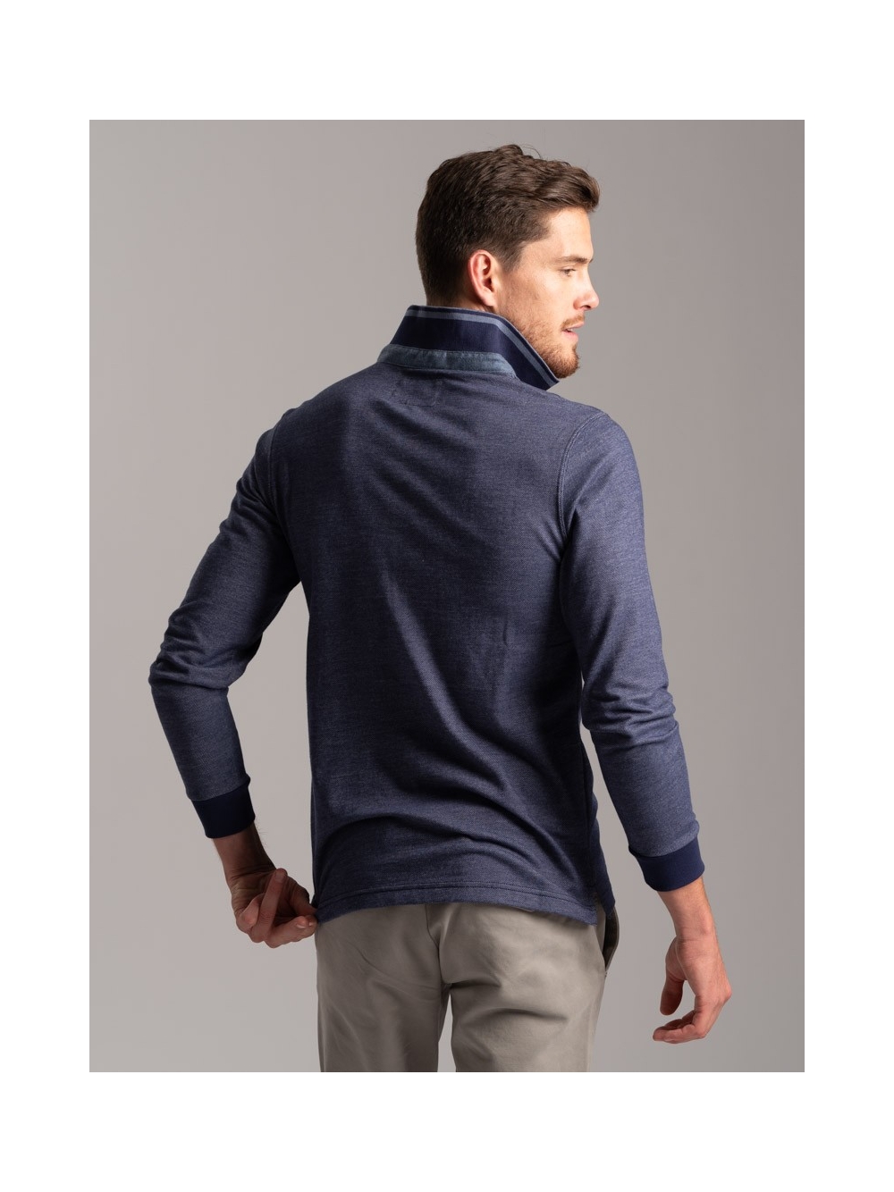 Polo uomo manica lunga, realizzata in tessuto diagonale. Tinto filo con inserti preziosi, disegno camiceria, Rib collo a contrasto.
