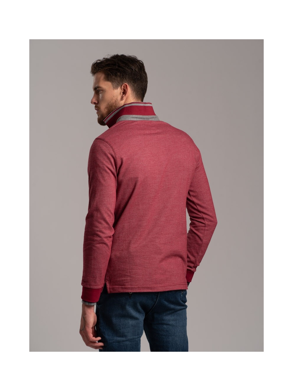 Polo uomo manica lunga in tessuto diagonale e Rib collo a contrasto