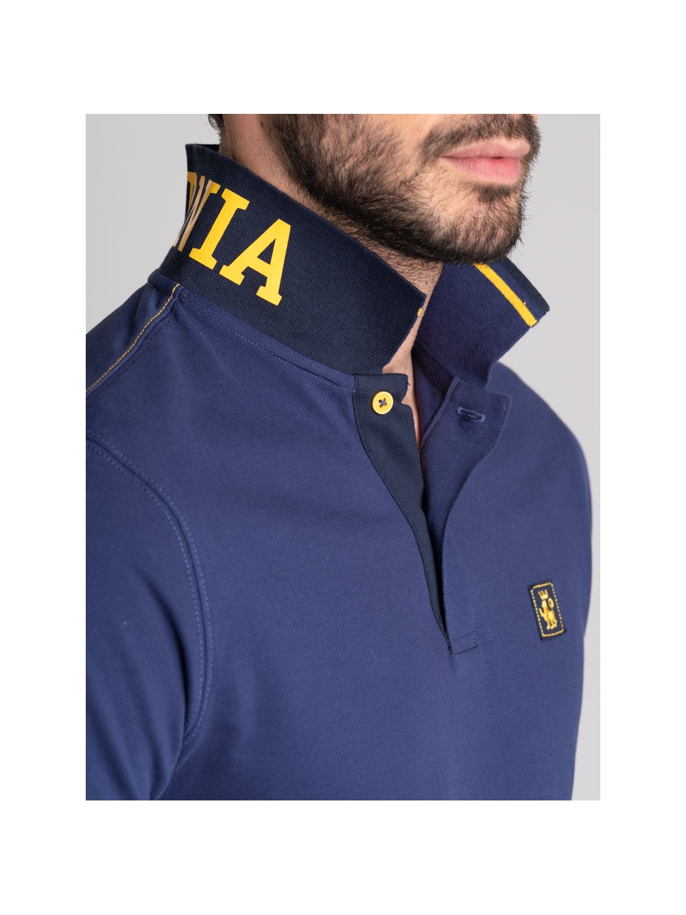 Polo uomo mezza manica realizzata in tessuto piquet 100% cotone, caratterizzata dal collo smacchinato doppio con stampa californiana all’esterno e riga colore a contrasto all’interno, ripresa anche sul rib del polsino della manica. Questa polo presenta cuciture in colore a contrasto sulle spalle, nastro canolo dello stesso colore del collo e il logo INVIDIA 1973 applicato. Disponibile nelle varianti colore bianco, verde e blu chiaro.
