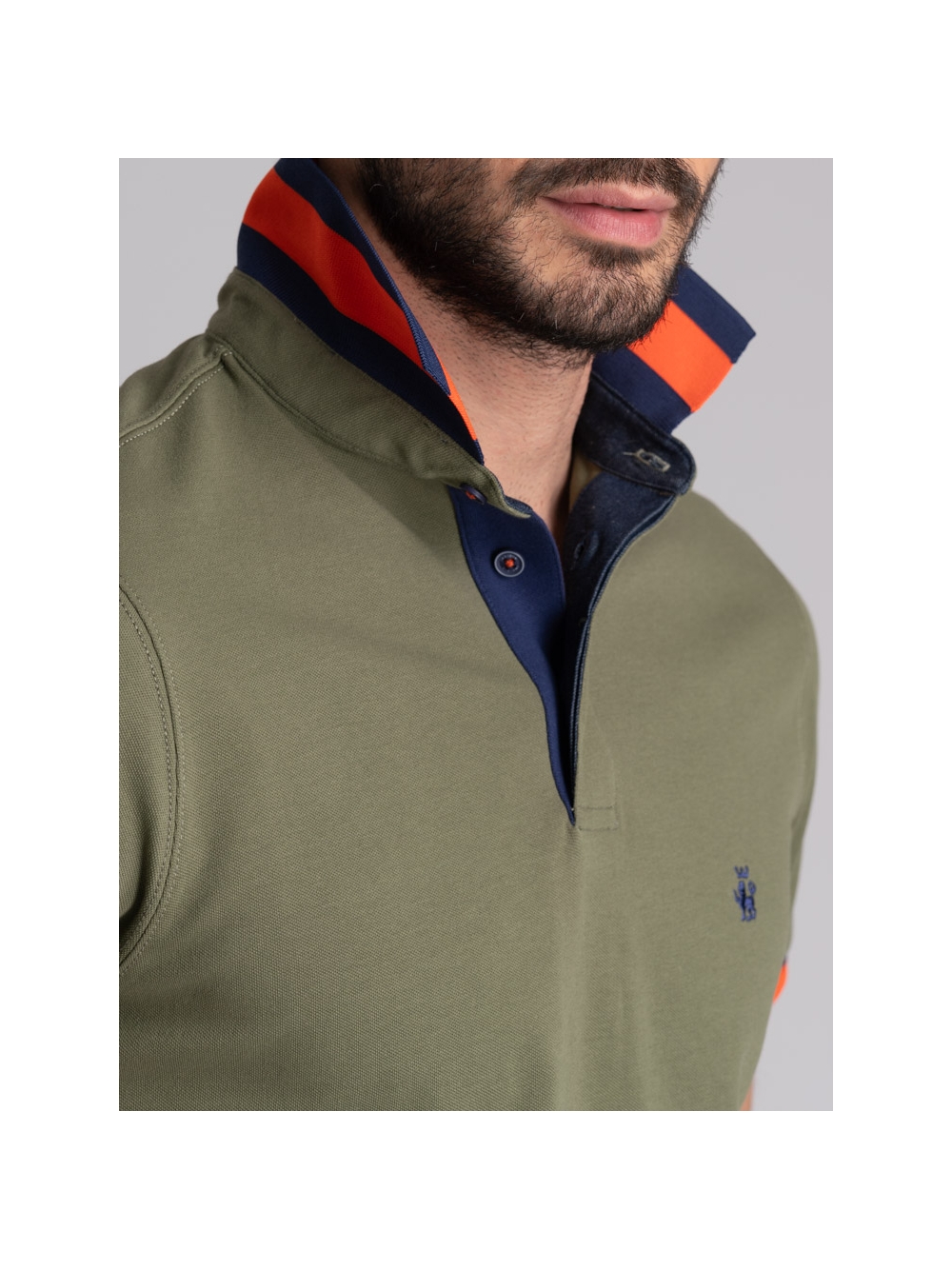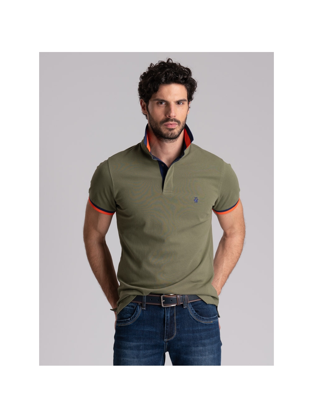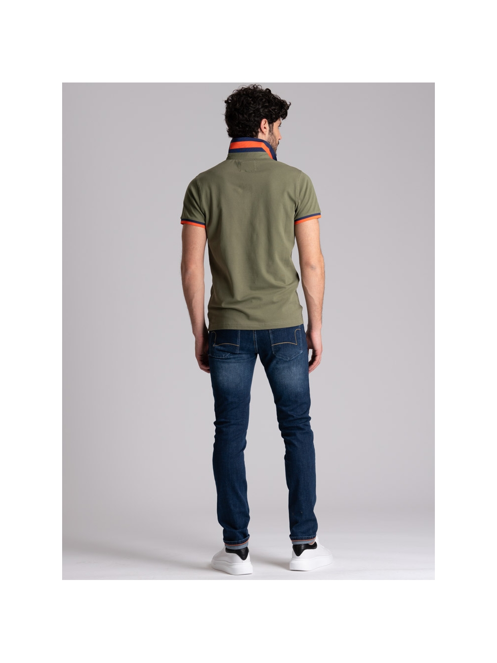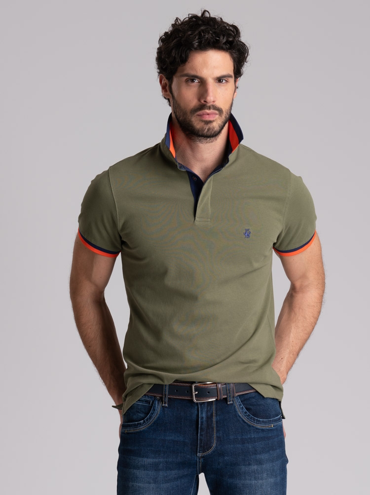 Polo uomo mezza manica realizzata in tessuto di cotone piquet stretch, caratterizzata dal collo camicia con costina e manica in rib rigati entrambi in poliestere, canolo a contrasto e logo INVIDIA 1973 ricamato. Questa polo uomo è disponibile nelle varianti colore blu, bianco, verde militare e arancio.