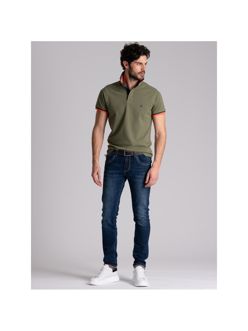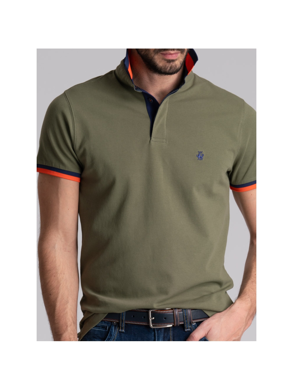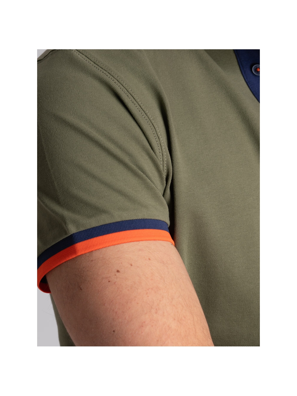 Polo uomo mezza manica realizzata in tessuto di cotone piquet stretch, caratterizzata dal collo camicia con costina e manica in rib rigati entrambi in poliestere, canolo a contrasto e logo INVIDIA 1973 ricamato. Questa polo uomo è disponibile nelle varianti colore blu, bianco, verde militare e arancio.